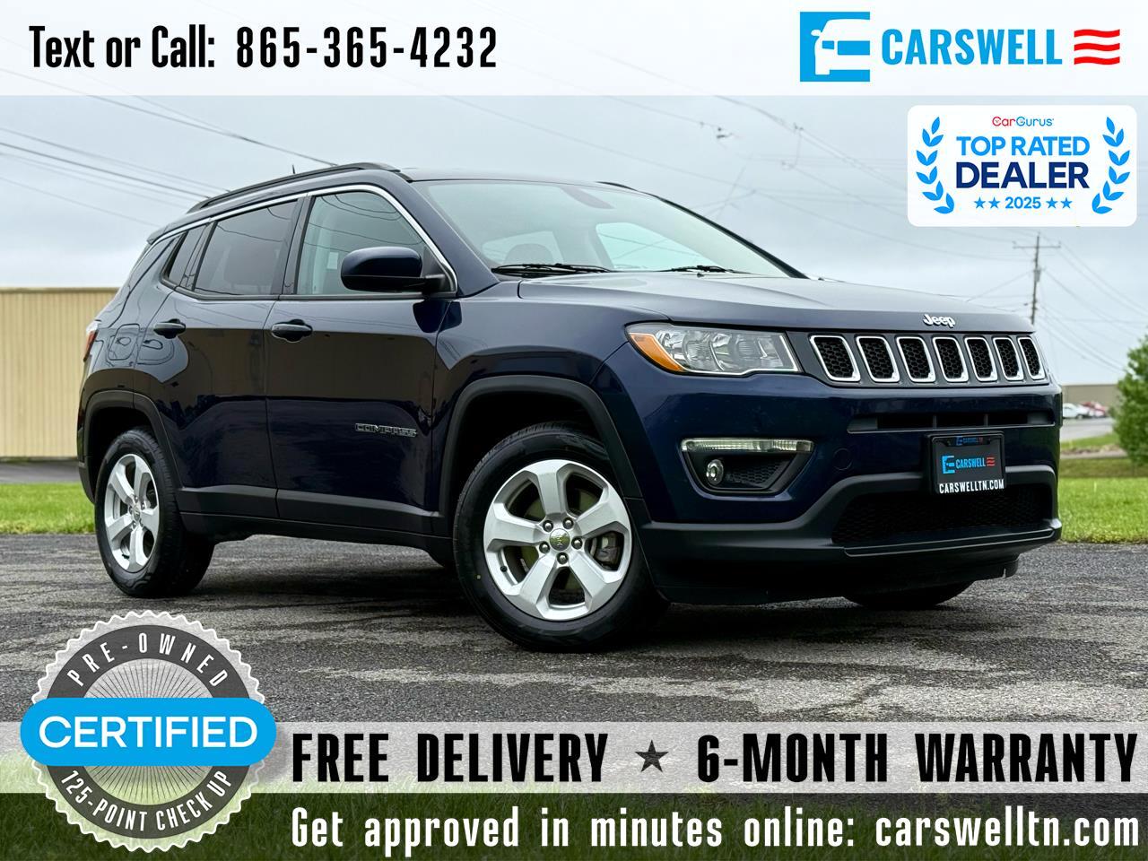 Compass Latitude, 4D Sport Utility, 2.4L I4, 6-Speed Aisin Automatic, FWD, Jazz Blue Pearlcoat, Black w/Premium Cloth Bucket Seats, 3.502 Axle Ratio, 4-Wheel Disc Brakes, 6 Speakers, ABS brakes, Air Conditioning, Alloy wheels, AM/FM radio: SiriusXM, Anti-whiplash front head restraints, Apple CarPlay/Android Auto, Automatic temperature control, Brake assist, Bumpers: body-color, Compass, Delay-off headlights, Driver door bin, Driver vanity mirror, Dual front impact airbags, Dual front side impact airbags, Electronic Stability Control, Four wheel independent suspension, Front anti-roll bar, Front Bucket Seats, Front Center Armrest w/Storage, Front dual zone A/C, Front fog lights, Front License Plate Bracket, Front reading lights, Fully automatic headlights, Heated door mirrors, Illuminated entry, Knee airbag, Leather Shift Knob, Low tire pressure warning, Occupant sensing airbag, Outside temperature display, Overhead airbag, Overhead console, Panic alarm, ParkView Rear Back-Up Camera, Passenger door bin, Passenger vanity mirror, Power door mirrors, Power steering, Power windows, Premium Cloth/Vinyl Bucket Seats, Quick Order Package 28J, Radio: Uconnect 4 w/7" Display, Rear anti-roll bar, Rear seat center armrest, Rear window defroster, Rear window wiper, Remote keyless entry, Roof rack: rails only, Speed control, Split folding rear seat, Spoiler, Steering wheel mounted audio controls, Tachometer, Telescoping steering wheel, Tilt steering wheel, Traction control, Trip computer, Variably intermittent wipers, Wheels: 17" x 7.0" Silver Painted Aluminum, Compass Latitude, 4D Sport Utility, 2.4L I4, 6-Speed Aisin Automatic, FWD, Jazz Blue Pearlcoat, Black w/Premium Cloth Bucket Seats.