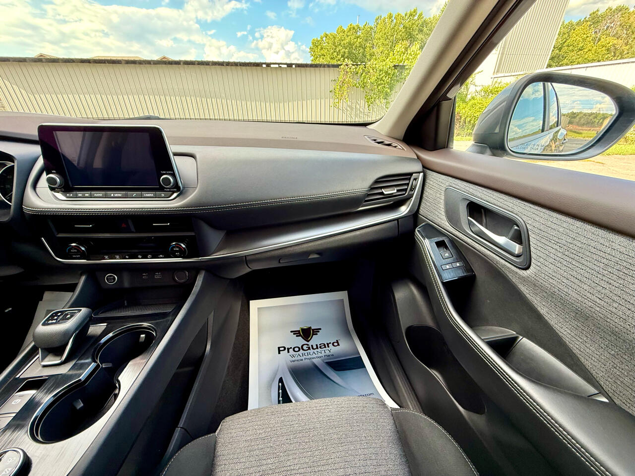Rogue SV, 4D Sport Utility, 1.5L I3 Turbocharged DOHC 12V LEV3-ULEV50 201hp, CVT with Xtronic, AWD, Gun Metallic, Charcoal w/Cloth Seat Trim, 18" Aluminum Alloy Wheels, 4-Wheel Disc Brakes, 5.604 Axle Ratio, 6 Speakers, ABS brakes, Air Conditioning, Alloy wheels, AM/FM Radio, AM/FM radio: SiriusXM, Auto High-beam Headlights, Automatic temperature control, Brake assist, Bumpers: body-color, Cloth Seat Trim, Delay-off headlights, Driver door bin, Driver vanity mirror, Dual front impact airbags, Dual front side impact airbags, Electronic Stability Control, Emergency communication system: NissanConnect Services, Four wheel independent suspension, Front anti-roll bar, Front Bucket Seats, Front Center Armrest, Front dual zone A/C, Front reading lights, Fully automatic headlights, Heated door mirrors, Illuminated entry, Knee airbag, Low tire pressure warning, NissanConnect featuring Apple CarPlay and Android Auto, Occupant sensing airbag, Outside temperature display, Overhead airbag, Overhead console, Panic alarm, Passenger door bin, Passenger vanity mirror, Power door mirrors, Power driver seat, Power steering, Power windows, Radio data system, Rear anti-roll bar, Rear Parking Sensors, Rear seat center armrest, Rear side impact airbag, Rear window defroster, Rear window wiper, Remote keyless entry, Speed control, Speed-Sensitive Wipers, Split folding rear seat, Spoiler, Steering wheel mounted audio controls, Tachometer, Telescoping steering wheel, Tilt steering wheel, Traction control, Trip computer, Variably intermittent wipers, Rogue SV, 4D Sport Utility, 1.5L I3 Turbocharged DOHC 12V LEV3-ULEV50 201hp, CVT with Xtronic, AWD, Gun Metallic, Charcoal w/Cloth Seat Trim.