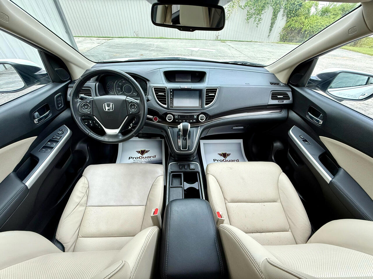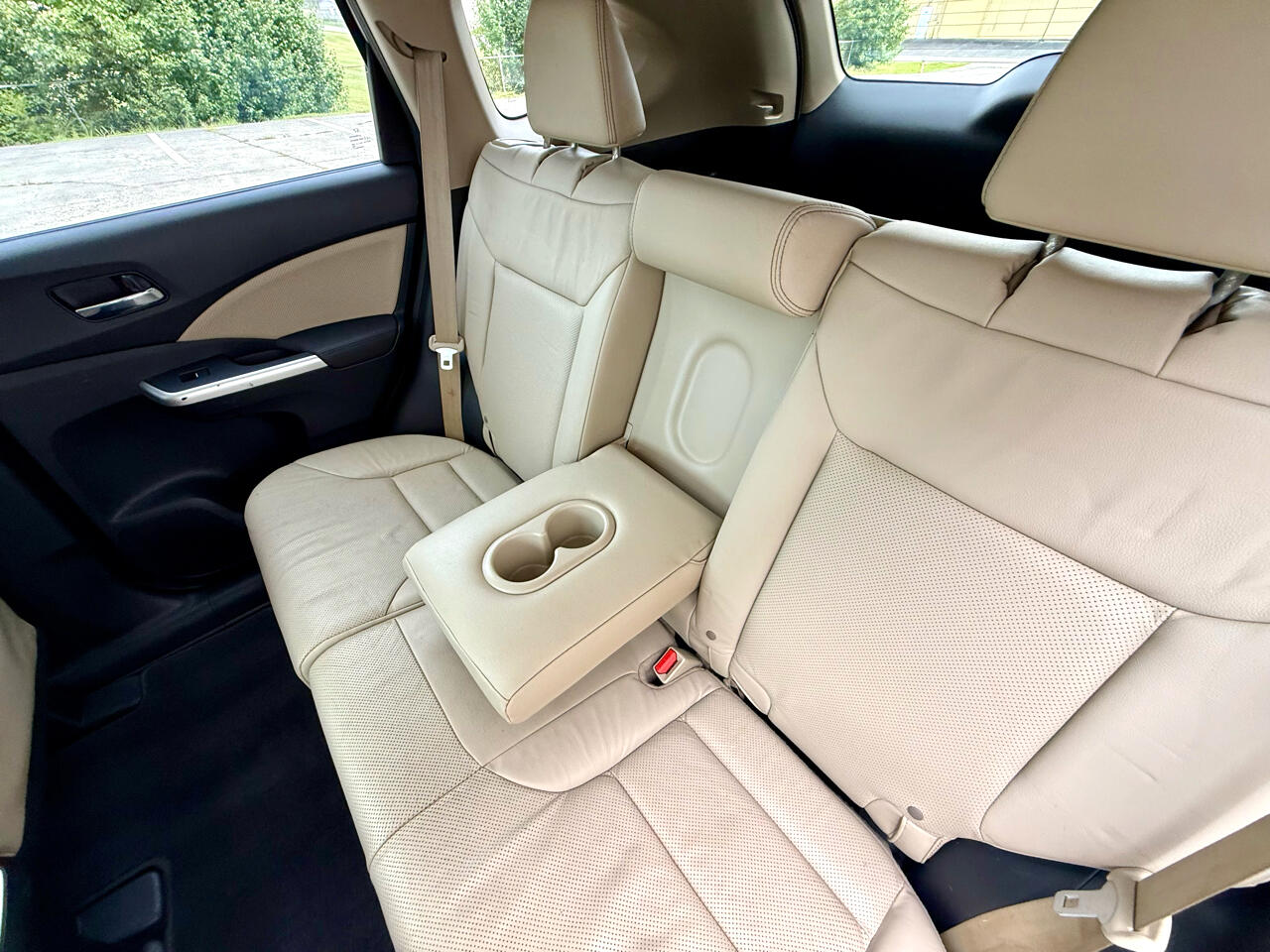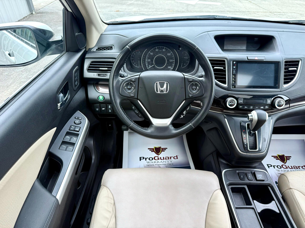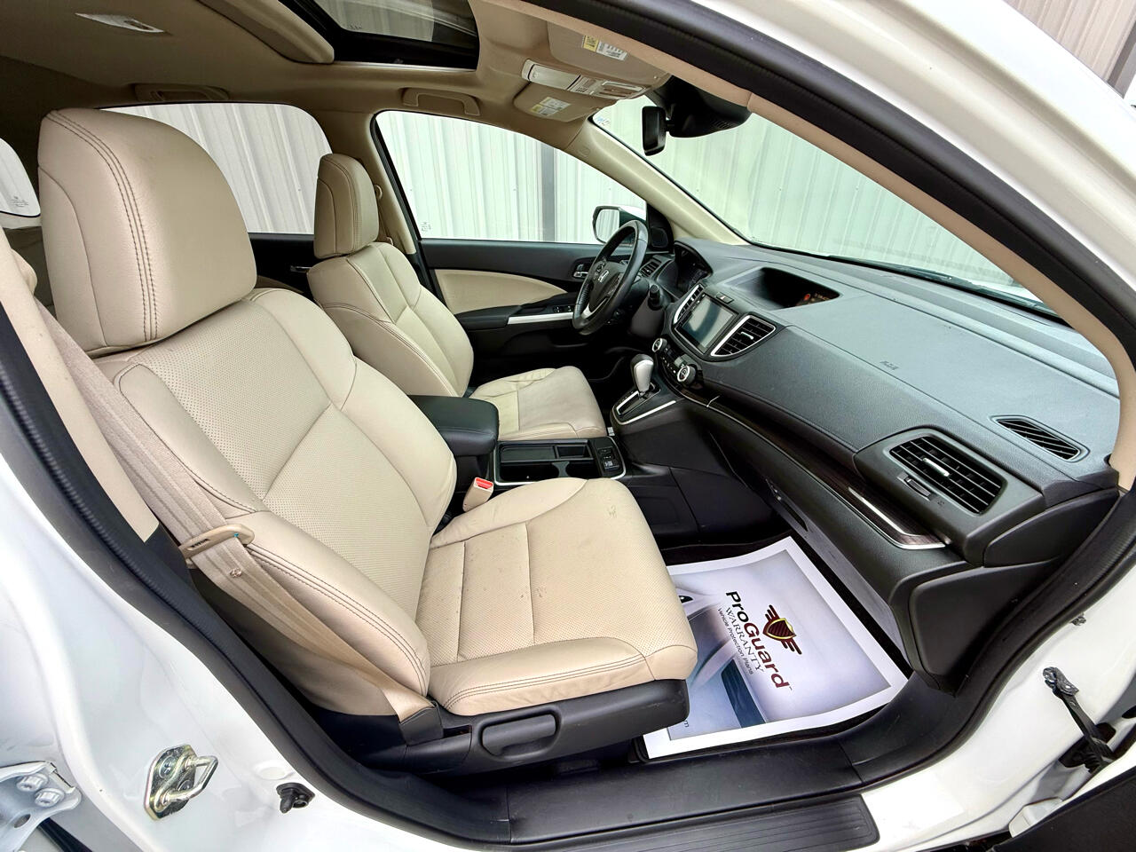 CR-V Touring, 4D Sport Utility, 2.4L I4 DOHC 16V i-VTEC, CVT, FWD, White Diamond Pearl, Beige w/Leather Seat Trim, 18" Alloy Wheels, 4-Wheel Disc Brakes, 5.048 Axle Ratio, 7 Speakers, ABS brakes, Air Conditioning, Alloy wheels, AM/FM radio: SiriusXM, Auto-dimming Rear-View mirror, Automatic temperature control, Brake assist, Bumpers: body-color, CD player, Compass, Delay-off headlights, Driver door bin, Driver vanity mirror, Dual front impact airbags, Dual front side impact airbags, Electronic Stability Control, Exterior Parking Camera Rear, Four wheel independent suspension, Front anti-roll bar, Front Bucket Seats, Front Center Armrest, Front dual zone A/C, Front fog lights, Front reading lights, Garage door transmitter: HomeLink, Heated door mirrors, Heated Front Bucket Seats, Heated front seats, Illuminated entry, Lane Departure Warning System, Leather Seat Trim, Leather Shift Knob, Low tire pressure warning, Memory seat, Navigation System, Occupant sensing airbag, Outside temperature display, Overhead airbag, Overhead console, Panic alarm, Passenger door bin, Passenger vanity mirror, Power door mirrors, Power driver seat, Power Liftgate, Power moonroof, Power steering, Power windows, Radio data system, Radio: AM/FM/CD/HD/SiriusXM Audio System, Rear anti-roll bar, Rear seat center armrest, Rear window defroster, Rear window wiper, Remote keyless entry, Roof rack: rails only, Security system, Speed control, Speed-sensing steering, Speed-Sensitive Wipers, Split folding rear seat, Steering wheel mounted audio controls, Tachometer, Telescoping steering wheel, Tilt steering wheel, Traction control, Trip computer, Turn signal indicator mirrors, Variably intermittent wipers, CR-V Touring, 4D Sport Utility, 2.4L I4 DOHC 16V i-VTEC, CVT, FWD, White Diamond Pearl, Beige w/Leather Seat Trim.