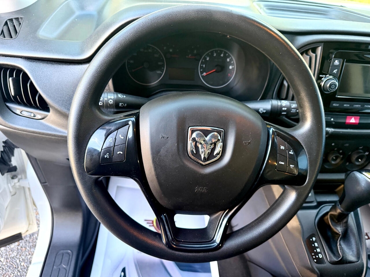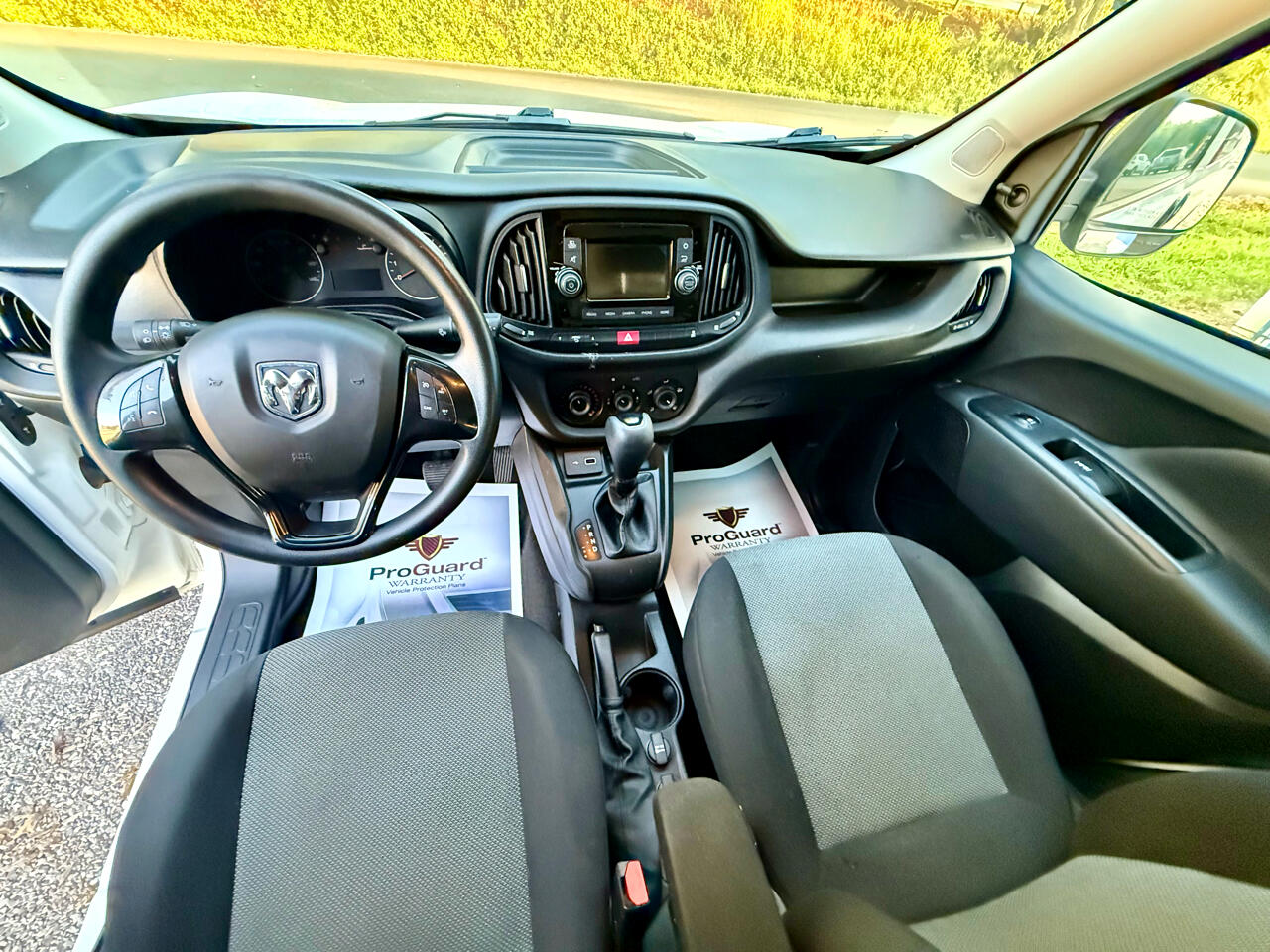 ProMaster City Tradesman, 4D Cargo Van, 2.4L I4 MultiAir, 9-Speed 948TE Automatic, FWD, Bright White, Black w/Cloth Low-Back Bucket Seats or Premium Vinyl Bucket Seats, 3.73 Axle Ratio, 4 Speakers, 5.0" Touchscreen Display, ABS brakes, Air Conditioning, AM/FM radio, Block heater, Bodyside moldings, Brake assist, Cloth Low-Back Bucket Seats, Daytime Running Headlamps, Delay-off headlights, Driver door bin, Driver vanity mirror, Driver's Seat Mounted Armrest, Dual front impact airbags, Dual front side impact airbags, Electronic Stability Control, Exterior Parking Camera Rear, Fixed Rear Cargo Door Window, Four wheel independent suspension, Front anti-roll bar, Front Bucket Seats, Front reading lights, Illuminated entry, Integrated Voice Command w/Bluetooth, Knee airbag, Low tire pressure warning, Occupant sensing airbag, Outside temperature display, Overhead airbag, Overhead console, ParkSense Rear Park Assist System, Passenger door bin, Passenger seat mounted armrest, Passenger vanity mirror, Power steering, Power windows, Radio: Uconnect 3 w/5" Display, Rear anti-roll bar, Remote keyless entry, Speed Control, Suspension w/HD Stabilization, Tachometer, Telescoping steering wheel, Tilt steering wheel, Traction control, Trip computer, Variably intermittent wipers, Wheels: 16" x 6.5" Silver Steel, ProMaster City Tradesman, 4D Cargo Van, 2.4L I4 MultiAir, 9-Speed 948TE Automatic, FWD, Bright White, Black w/Cloth Low-Back Bucket Seats or Premium Vinyl Bucket Seats.