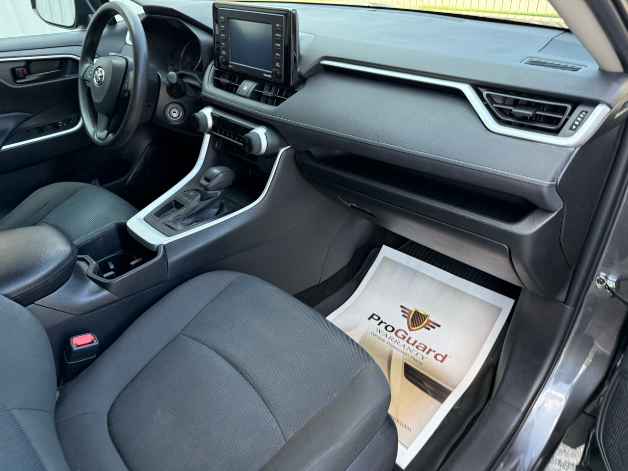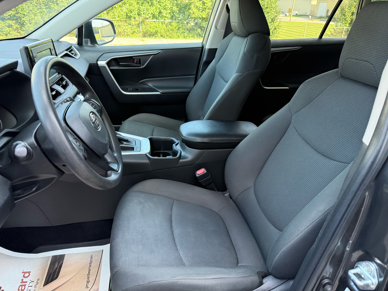 RAV4 LE, 4D Sport Utility, 2.5L 4-Cylinder DOHC Dual VVT-i, 8-Speed Automatic, FWD, Magnetic Gray Metallic, Black w/Fabric Seat Trim, 17" Steel Wheels, 4-Wheel Disc Brakes, 6 Speakers, ABS brakes, Air Conditioning, AM/FM radio: SiriusXM, AM/FM Stereo, Apple CarPlay/Android Auto, Auto High-beam Headlights, Axle Ratio: 3.177, Brake assist, Bumpers: body-color, Driver door bin, Driver vanity mirror, Dual front impact airbags, Dual front side impact airbags, Electronic Stability Control, Emergency communication system: Safety Connect with 1-year trial, Exterior Parking Camera Rear, Fabric Seat Trim, Four wheel independent suspension, Front anti-roll bar, Front Bucket Seats, Front Center Armrest, Front reading lights, Illuminated entry, Knee airbag, Low tire pressure warning, Occupant sensing airbag, Outside temperature display, Overhead airbag, Overhead console, Panic alarm, Passenger door bin, Passenger vanity mirror, Power door mirrors, Power steering, Power windows, Radio data system, Rear anti-roll bar, Rear seat center armrest, Rear window defroster, Rear window wiper, Remote keyless entry, Speed control, Speed-sensing steering, Split folding rear seat, Spoiler, Steering wheel mounted audio controls, Tachometer, Telescoping steering wheel, Tilt steering wheel, Traction control, Trip computer, RAV4 LE, 4D Sport Utility, 2.5L 4-Cylinder DOHC Dual VVT-i, 8-Speed Automatic, FWD, Magnetic Gray Metallic, Black w/Fabric Seat Trim.