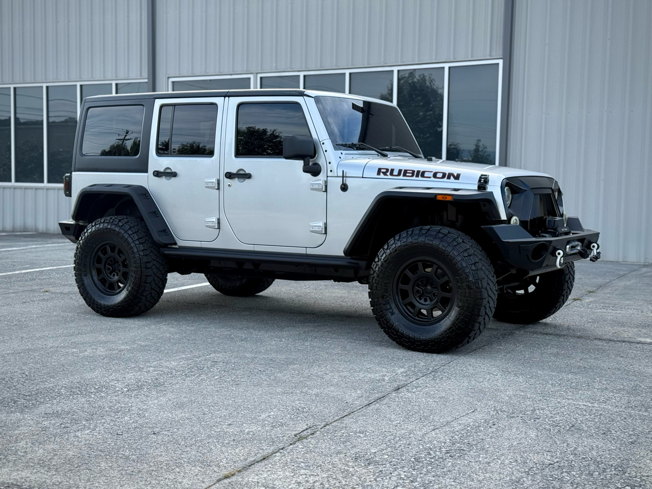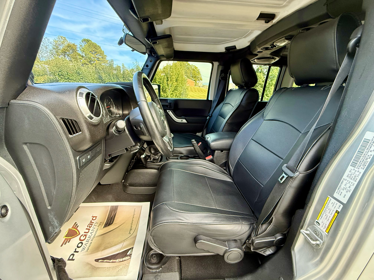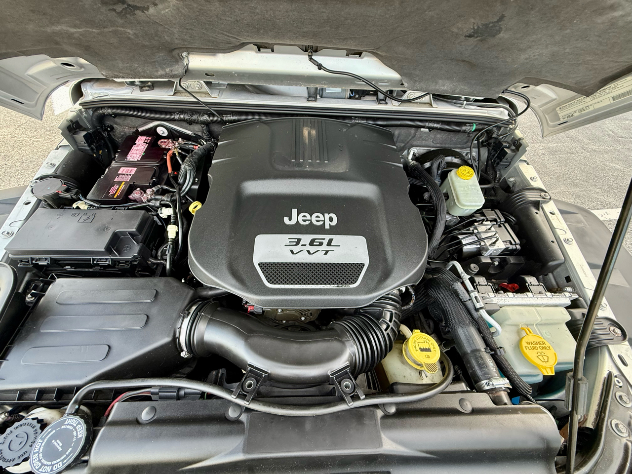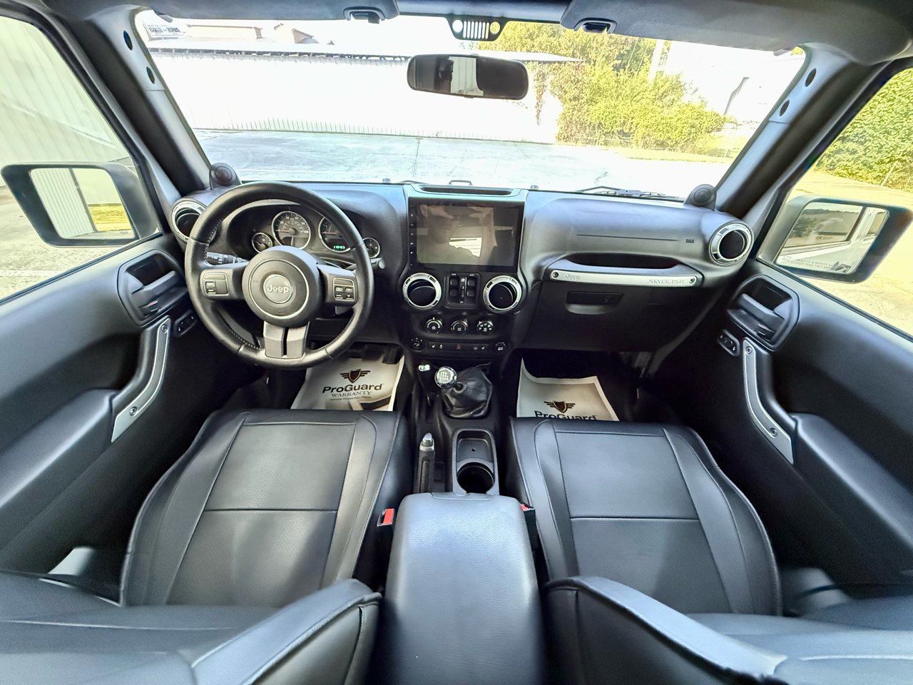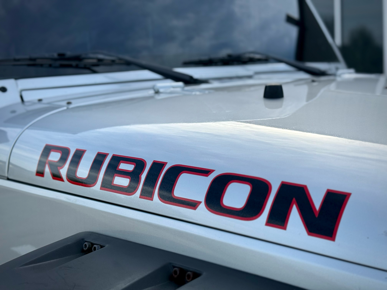 Wrangler Unlimited Rubicon, 4D Sport Utility, 3.6L V6 24V VVT, 6-Speed Manual, 4WD, Bright Silver Metallic Clearcoat, Black w/Cloth Bucket Seats, 17" x 7.5" Painted Aluminum Wheels, 4-Wheel Disc Brakes, 4.10 Rear Axle Ratio, 7 Speakers, ABS brakes, Air Conditioning, Alloy wheels, AM/FM radio: SIRIUS, Audio Jack Input for Mobile Devices, Black 3-Piece Hard Top, Brake assist, CD player, Class II Receiver Hitch, Cloth Bucket Seats, Compass, Driver door bin, Driver vanity mirror, Dual front impact airbags, Electronic Stability Control, Freedom Panel Storage Bag, Front anti-roll bar, Front Bucket Seats, Front Center Armrest w/Storage, Front fog lights, Fully automatic headlights, Heated door mirrors, Heated Front Seats, Illuminated entry, Integrated roll-over protection, Leather steering wheel, Low tire pressure warning, Max Tow Package, Occupant sensing airbag, Outside temperature display, Panic alarm, Passenger door bin, Passenger vanity mirror, Performance Suspension, Power door mirrors, Power steering, Power windows, Quick Order Package 23R, Radio data system, Radio: Uconnect 130 CD/MP3, Rear anti-roll bar, Rear Window Defroster, Rear Window Wiper/Washer, Remote keyless entry, Security system, Speed control, Split folding rear seat, Steering wheel mounted audio controls, Tachometer, Tilt steering wheel, Traction control, Trailer Sway Damping, Trailer Tow w/4-Pin Connector Wiring, Trip computer, Variably intermittent wipers, Wrangler Unlimited Rubicon, 4D Sport Utility, 3.6L V6 24V VVT, 6-Speed Manual, 4WD, Bright Silver Metallic Clearcoat, Black w/Cloth Bucket Seats.