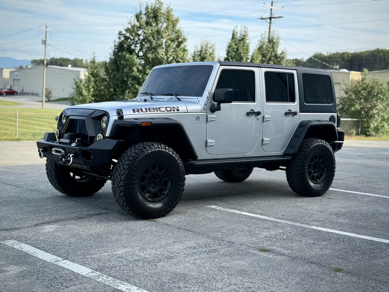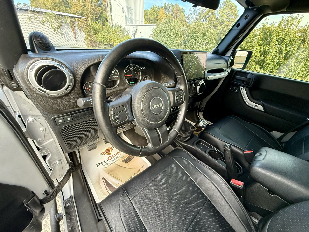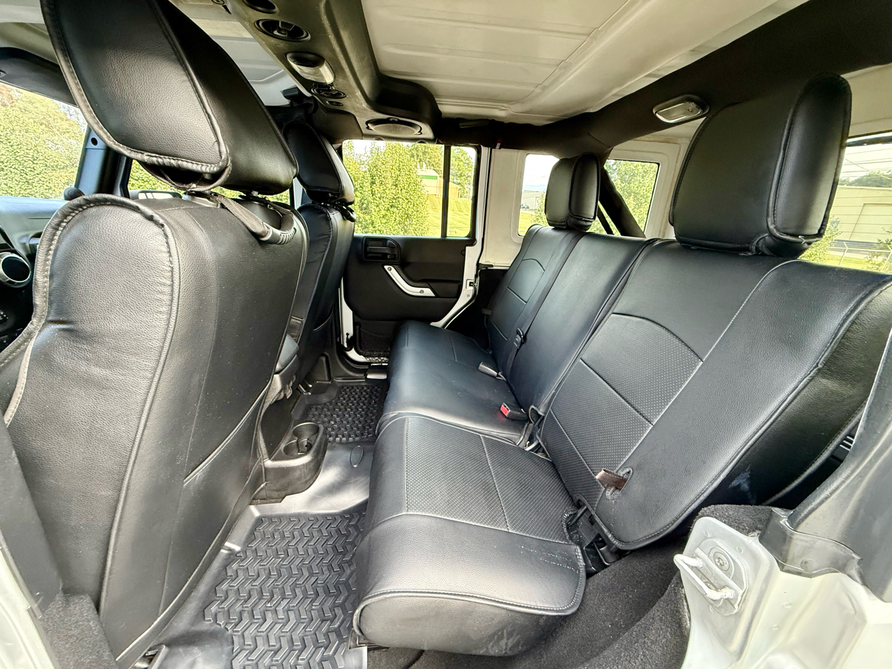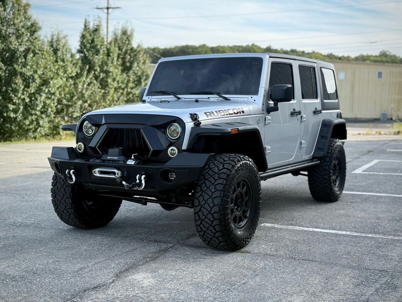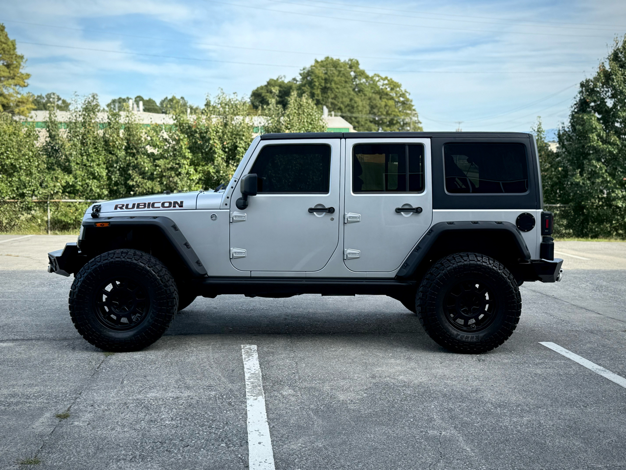 Wrangler Unlimited Rubicon, 4D Sport Utility, 3.6L V6 24V VVT, 6-Speed Manual, 4WD, Bright Silver Metallic Clearcoat, Black w/Cloth Bucket Seats, 17" x 7.5" Painted Aluminum Wheels, 4-Wheel Disc Brakes, 4.10 Rear Axle Ratio, 7 Speakers, ABS brakes, Air Conditioning, Alloy wheels, AM/FM radio: SIRIUS, Audio Jack Input for Mobile Devices, Black 3-Piece Hard Top, Brake assist, CD player, Class II Receiver Hitch, Cloth Bucket Seats, Compass, Driver door bin, Driver vanity mirror, Dual front impact airbags, Electronic Stability Control, Freedom Panel Storage Bag, Front anti-roll bar, Front Bucket Seats, Front Center Armrest w/Storage, Front fog lights, Fully automatic headlights, Heated door mirrors, Heated Front Seats, Illuminated entry, Integrated roll-over protection, Leather steering wheel, Low tire pressure warning, Max Tow Package, Occupant sensing airbag, Outside temperature display, Panic alarm, Passenger door bin, Passenger vanity mirror, Performance Suspension, Power door mirrors, Power steering, Power windows, Quick Order Package 23R, Radio data system, Radio: Uconnect 130 CD/MP3, Rear anti-roll bar, Rear Window Defroster, Rear Window Wiper/Washer, Remote keyless entry, Security system, Speed control, Split folding rear seat, Steering wheel mounted audio controls, Tachometer, Tilt steering wheel, Traction control, Trailer Sway Damping, Trailer Tow w/4-Pin Connector Wiring, Trip computer, Variably intermittent wipers, Wrangler Unlimited Rubicon, 4D Sport Utility, 3.6L V6 24V VVT, 6-Speed Manual, 4WD, Bright Silver Metallic Clearcoat, Black w/Cloth Bucket Seats.