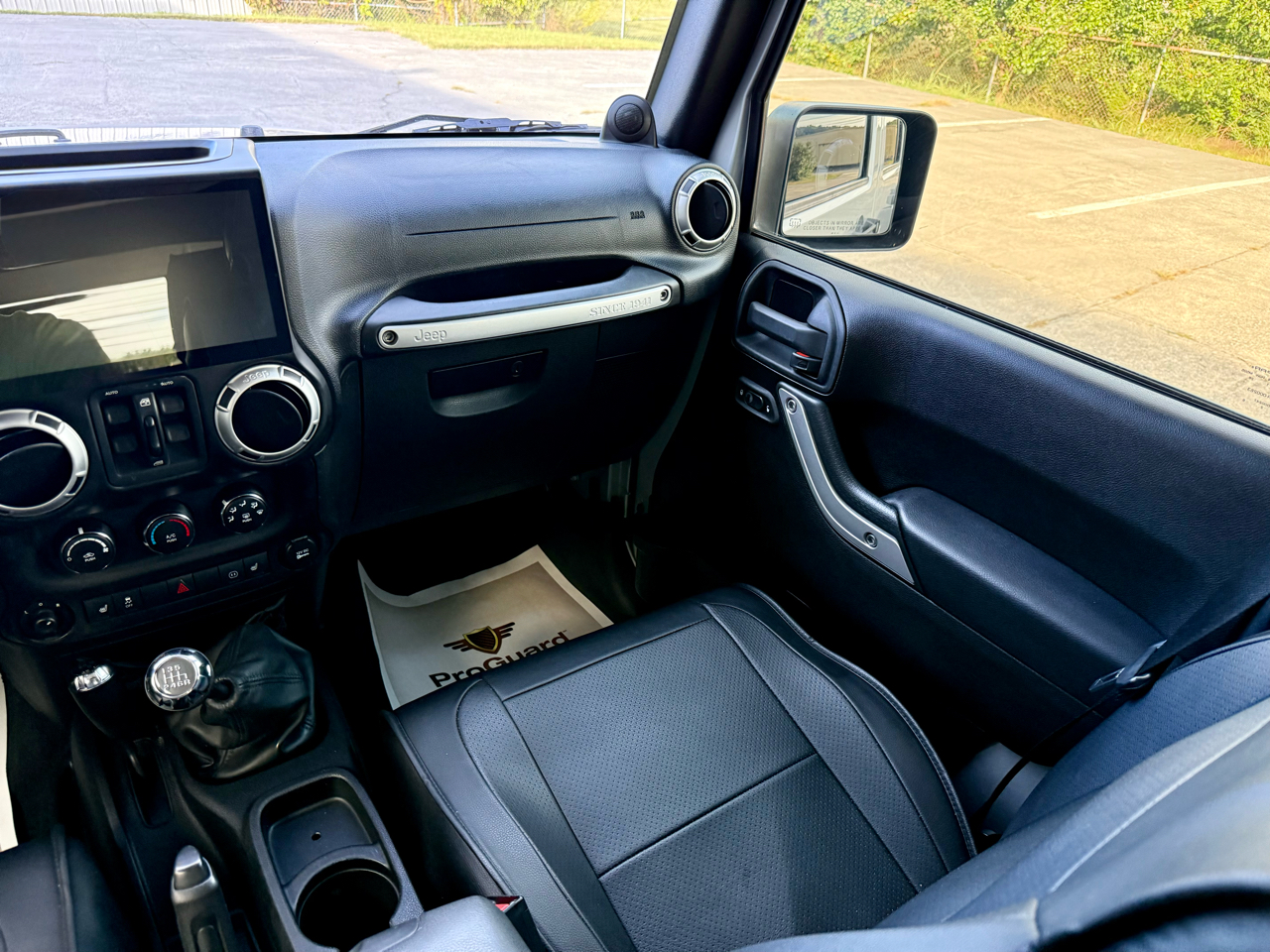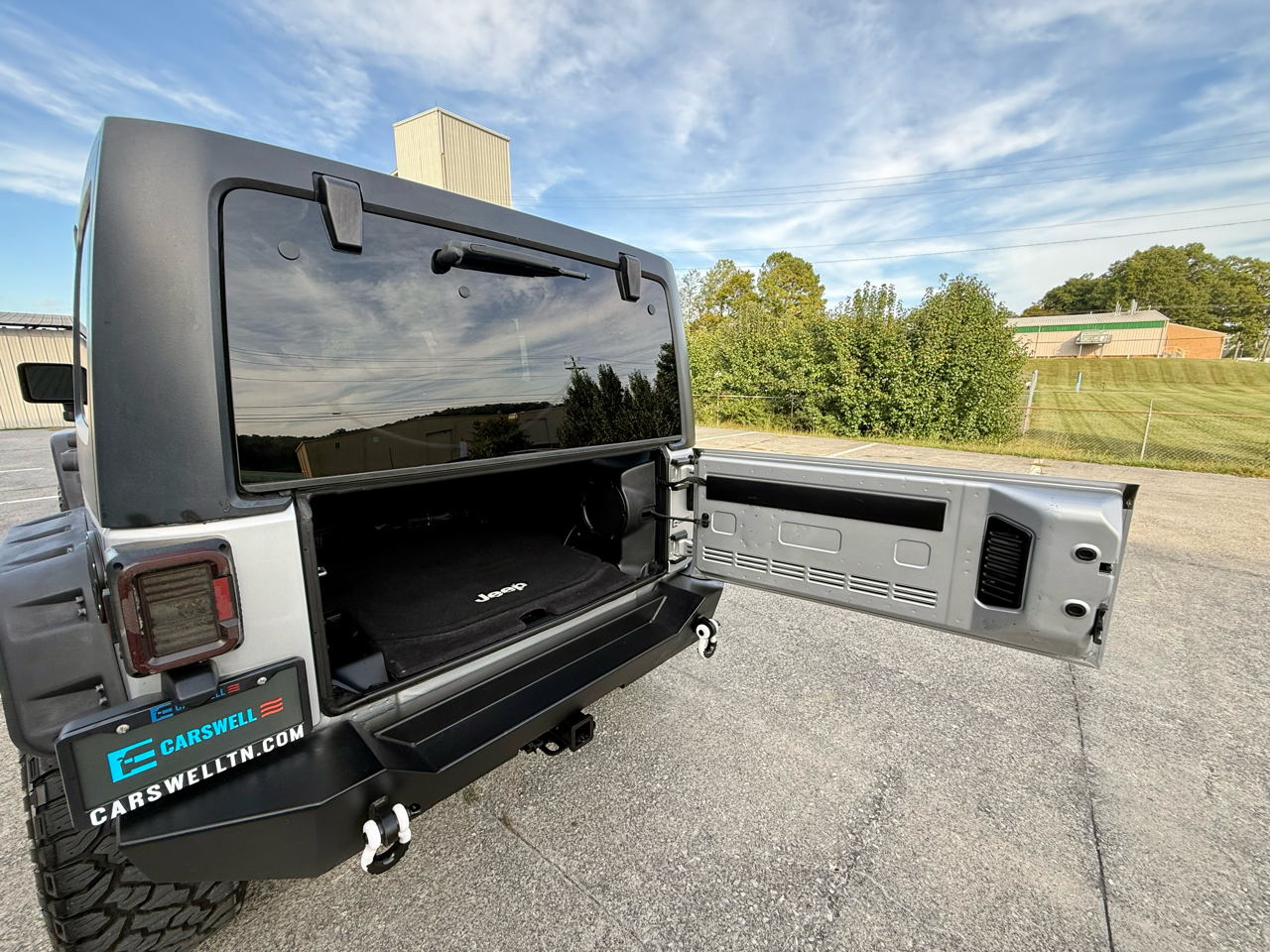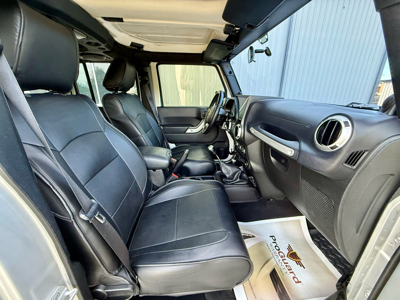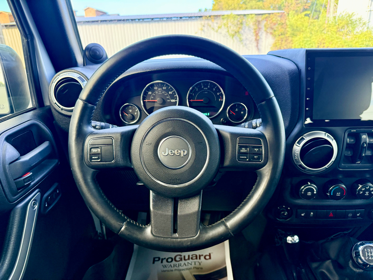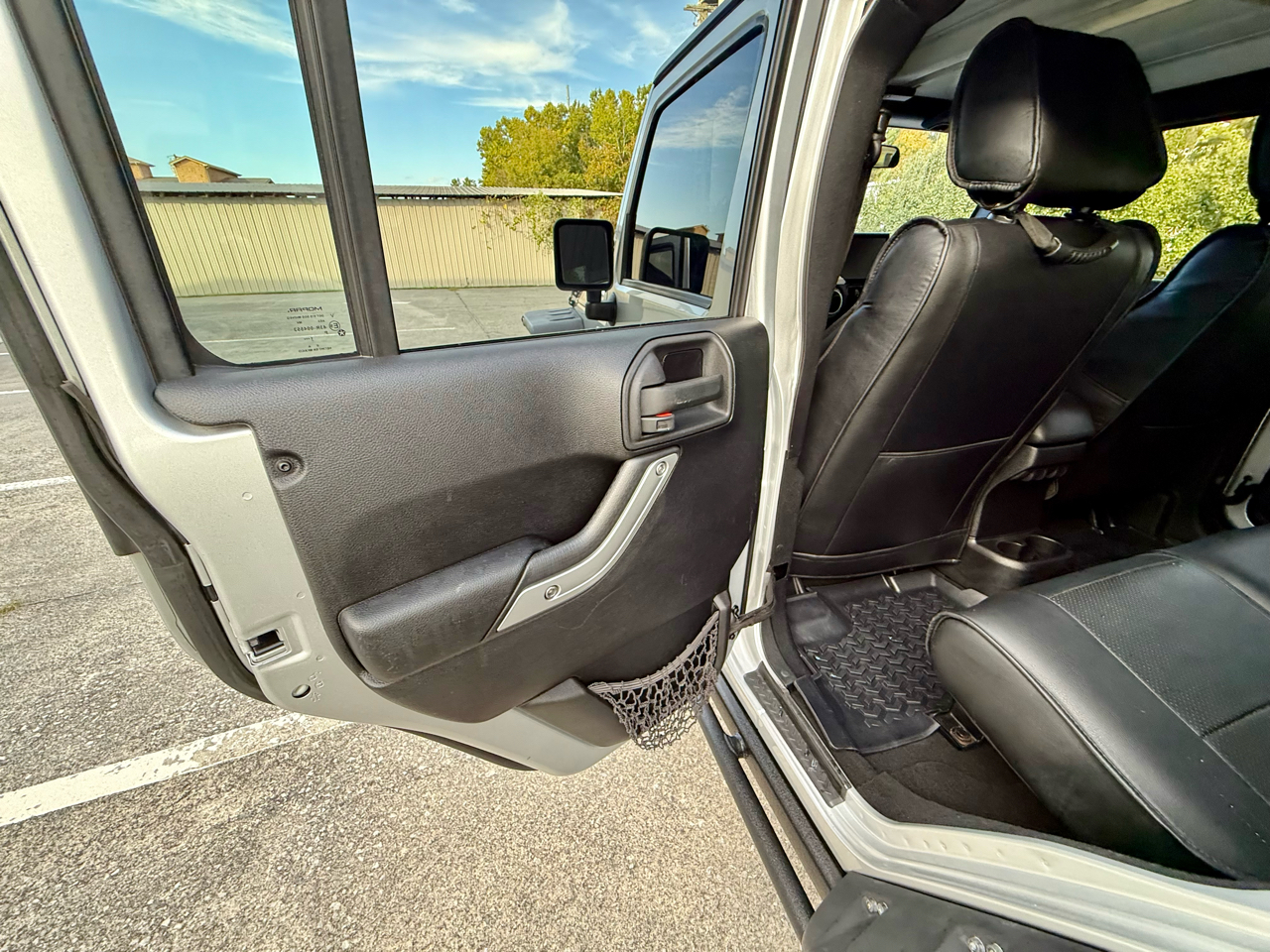 Wrangler Unlimited Rubicon, 4D Sport Utility, 3.6L V6 24V VVT, 6-Speed Manual, 4WD, Bright Silver Metallic Clearcoat, Black w/Cloth Bucket Seats, 17" x 7.5" Painted Aluminum Wheels, 4-Wheel Disc Brakes, 4.10 Rear Axle Ratio, 7 Speakers, ABS brakes, Air Conditioning, Alloy wheels, AM/FM radio: SIRIUS, Audio Jack Input for Mobile Devices, Black 3-Piece Hard Top, Brake assist, CD player, Class II Receiver Hitch, Cloth Bucket Seats, Compass, Driver door bin, Driver vanity mirror, Dual front impact airbags, Electronic Stability Control, Freedom Panel Storage Bag, Front anti-roll bar, Front Bucket Seats, Front Center Armrest w/Storage, Front fog lights, Fully automatic headlights, Heated door mirrors, Heated Front Seats, Illuminated entry, Integrated roll-over protection, Leather steering wheel, Low tire pressure warning, Max Tow Package, Occupant sensing airbag, Outside temperature display, Panic alarm, Passenger door bin, Passenger vanity mirror, Performance Suspension, Power door mirrors, Power steering, Power windows, Quick Order Package 23R, Radio data system, Radio: Uconnect 130 CD/MP3, Rear anti-roll bar, Rear Window Defroster, Rear Window Wiper/Washer, Remote keyless entry, Security system, Speed control, Split folding rear seat, Steering wheel mounted audio controls, Tachometer, Tilt steering wheel, Traction control, Trailer Sway Damping, Trailer Tow w/4-Pin Connector Wiring, Trip computer, Variably intermittent wipers, Wrangler Unlimited Rubicon, 4D Sport Utility, 3.6L V6 24V VVT, 6-Speed Manual, 4WD, Bright Silver Metallic Clearcoat, Black w/Cloth Bucket Seats.