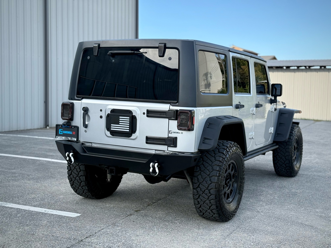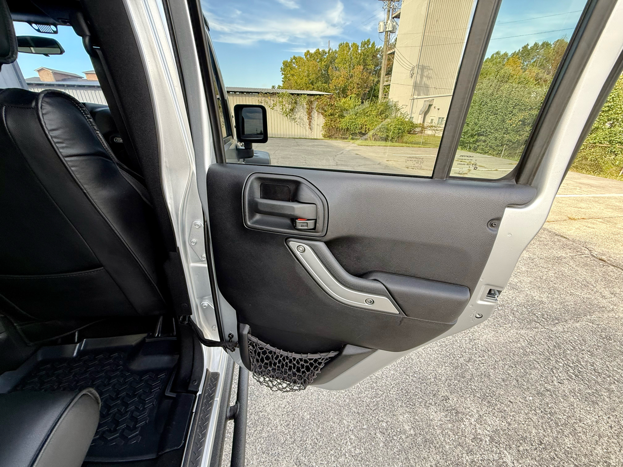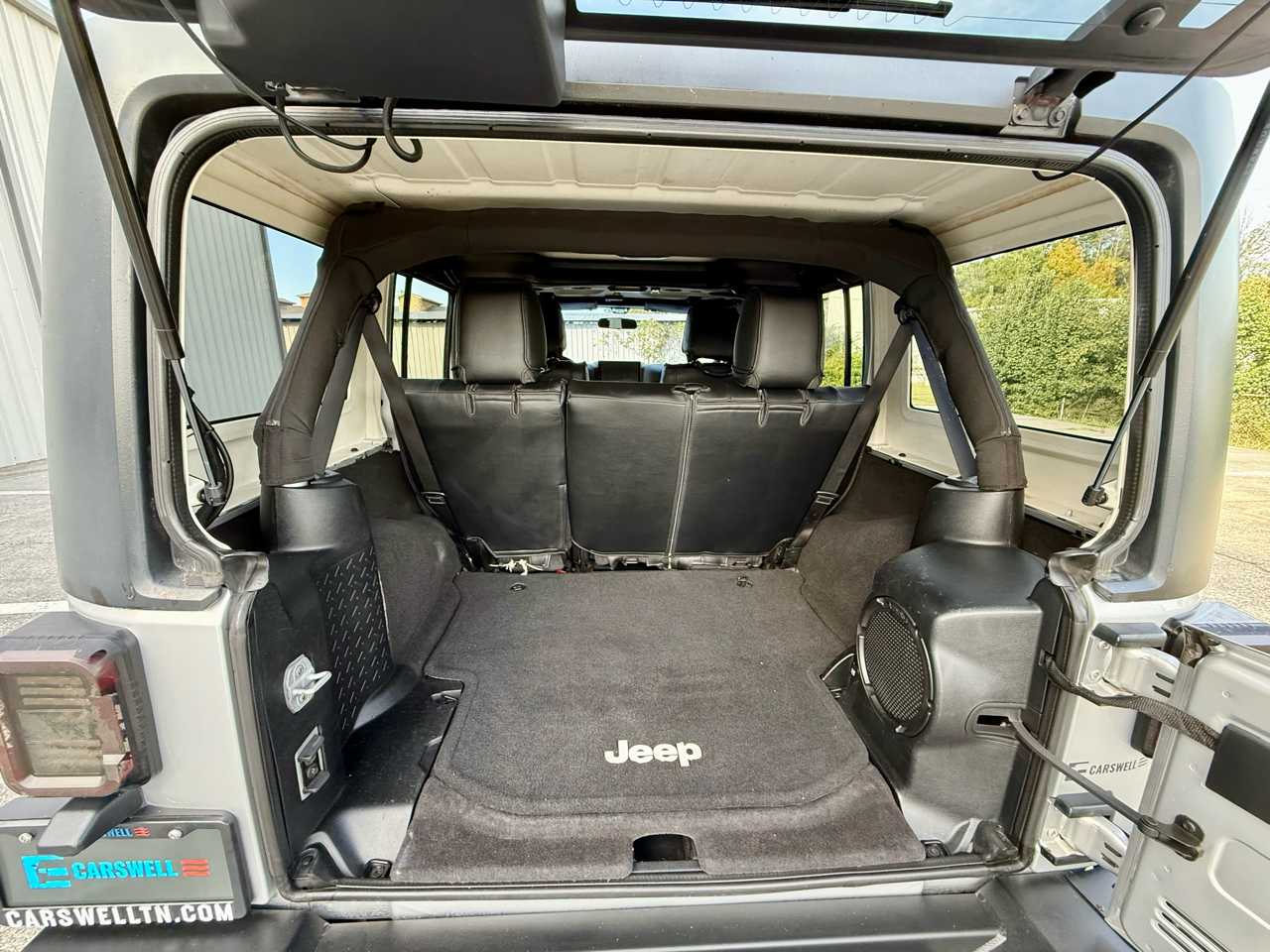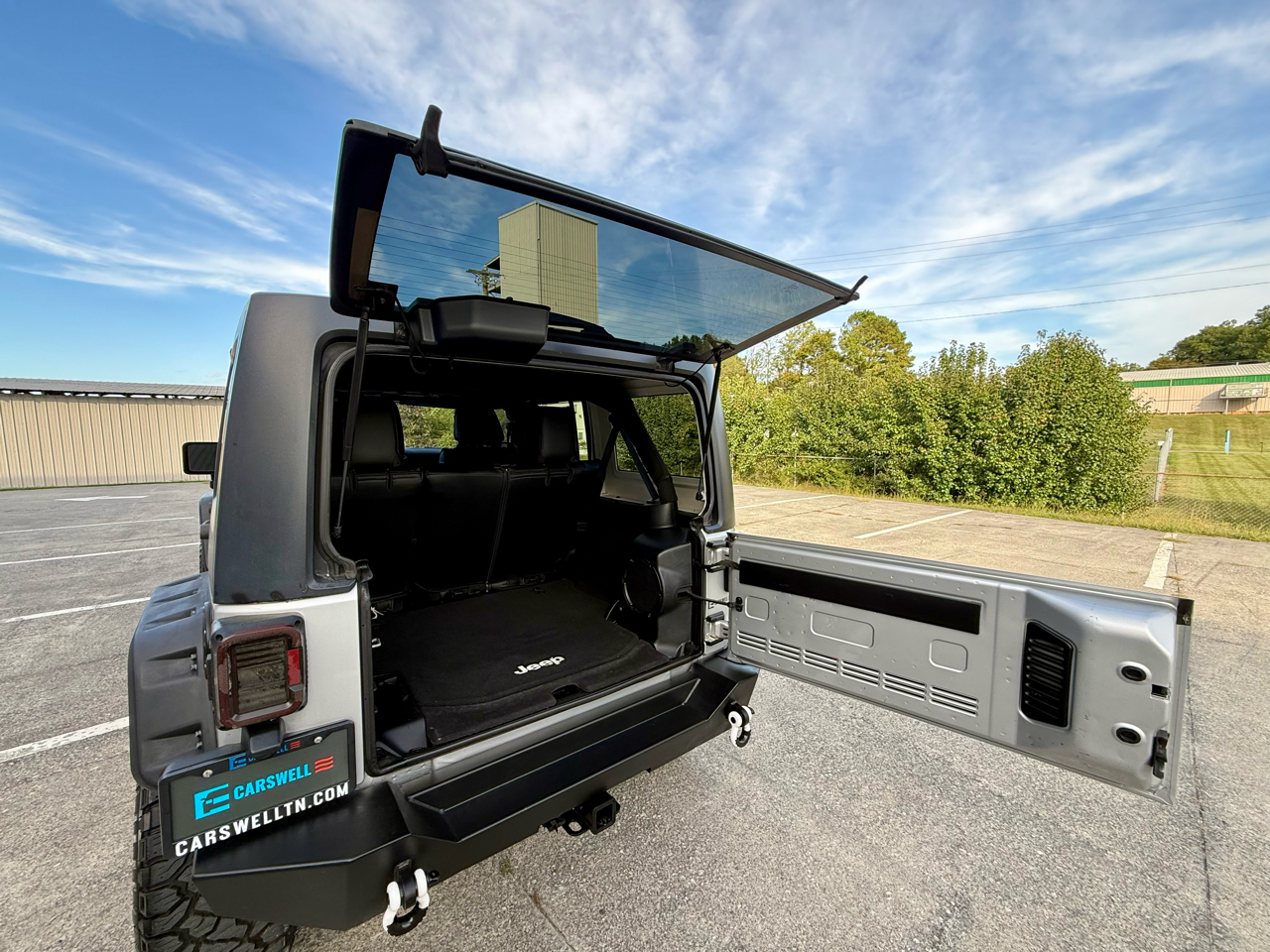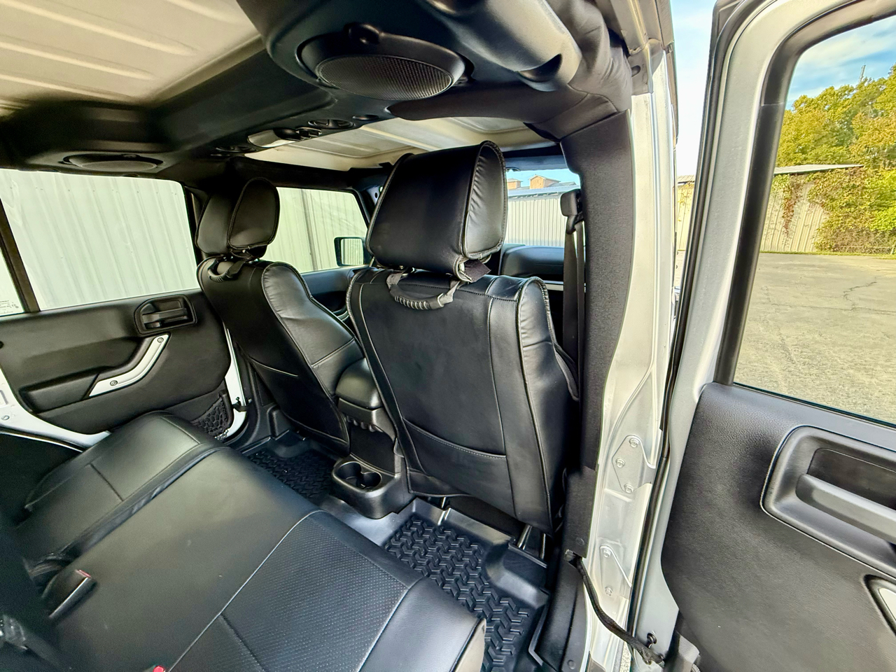 Wrangler Unlimited Rubicon, 4D Sport Utility, 3.6L V6 24V VVT, 6-Speed Manual, 4WD, Bright Silver Metallic Clearcoat, Black w/Cloth Bucket Seats, 17" x 7.5" Painted Aluminum Wheels, 4-Wheel Disc Brakes, 4.10 Rear Axle Ratio, 7 Speakers, ABS brakes, Air Conditioning, Alloy wheels, AM/FM radio: SIRIUS, Audio Jack Input for Mobile Devices, Black 3-Piece Hard Top, Brake assist, CD player, Class II Receiver Hitch, Cloth Bucket Seats, Compass, Driver door bin, Driver vanity mirror, Dual front impact airbags, Electronic Stability Control, Freedom Panel Storage Bag, Front anti-roll bar, Front Bucket Seats, Front Center Armrest w/Storage, Front fog lights, Fully automatic headlights, Heated door mirrors, Heated Front Seats, Illuminated entry, Integrated roll-over protection, Leather steering wheel, Low tire pressure warning, Max Tow Package, Occupant sensing airbag, Outside temperature display, Panic alarm, Passenger door bin, Passenger vanity mirror, Performance Suspension, Power door mirrors, Power steering, Power windows, Quick Order Package 23R, Radio data system, Radio: Uconnect 130 CD/MP3, Rear anti-roll bar, Rear Window Defroster, Rear Window Wiper/Washer, Remote keyless entry, Security system, Speed control, Split folding rear seat, Steering wheel mounted audio controls, Tachometer, Tilt steering wheel, Traction control, Trailer Sway Damping, Trailer Tow w/4-Pin Connector Wiring, Trip computer, Variably intermittent wipers, Wrangler Unlimited Rubicon, 4D Sport Utility, 3.6L V6 24V VVT, 6-Speed Manual, 4WD, Bright Silver Metallic Clearcoat, Black w/Cloth Bucket Seats.