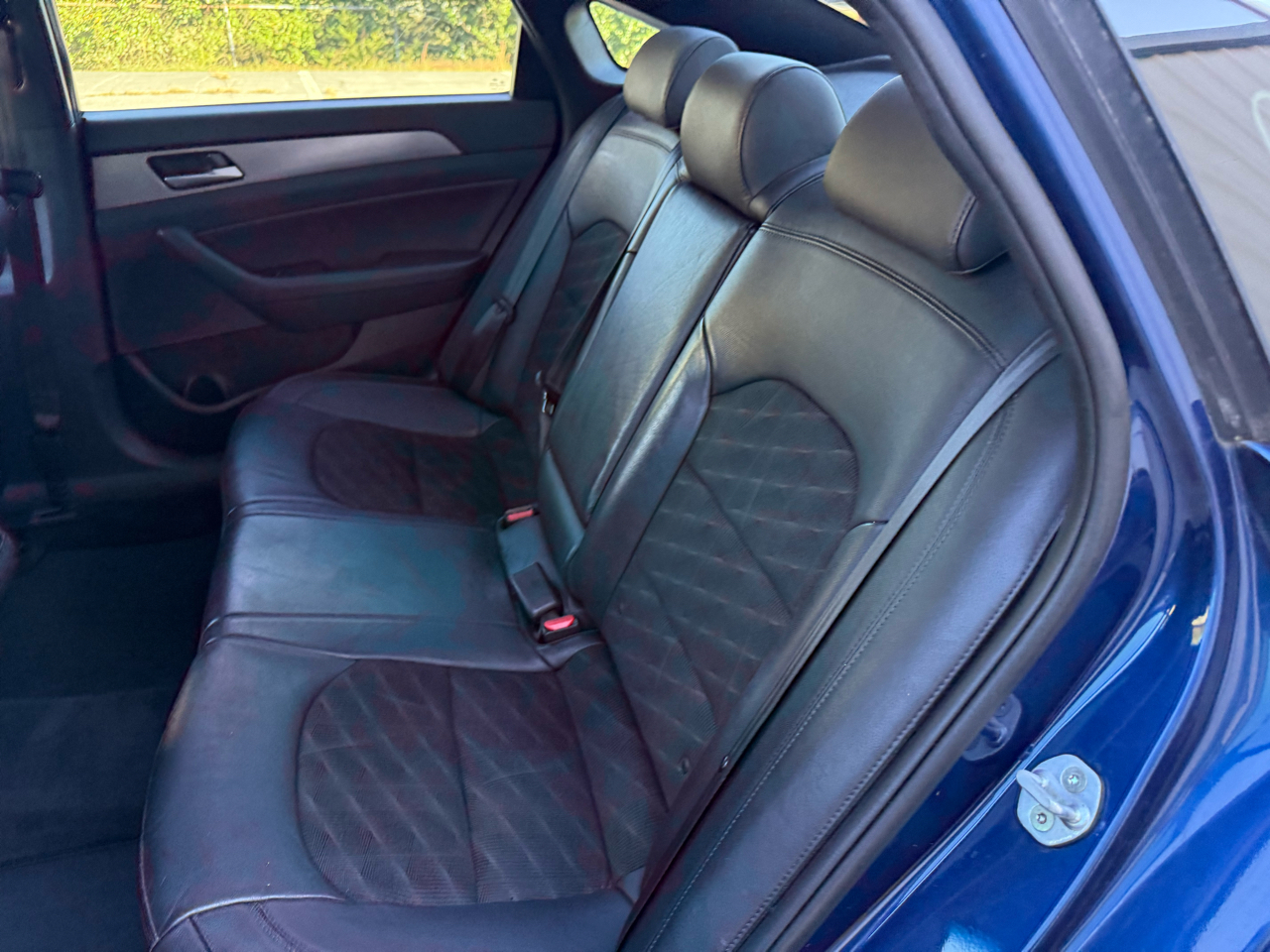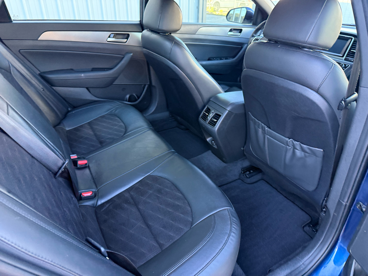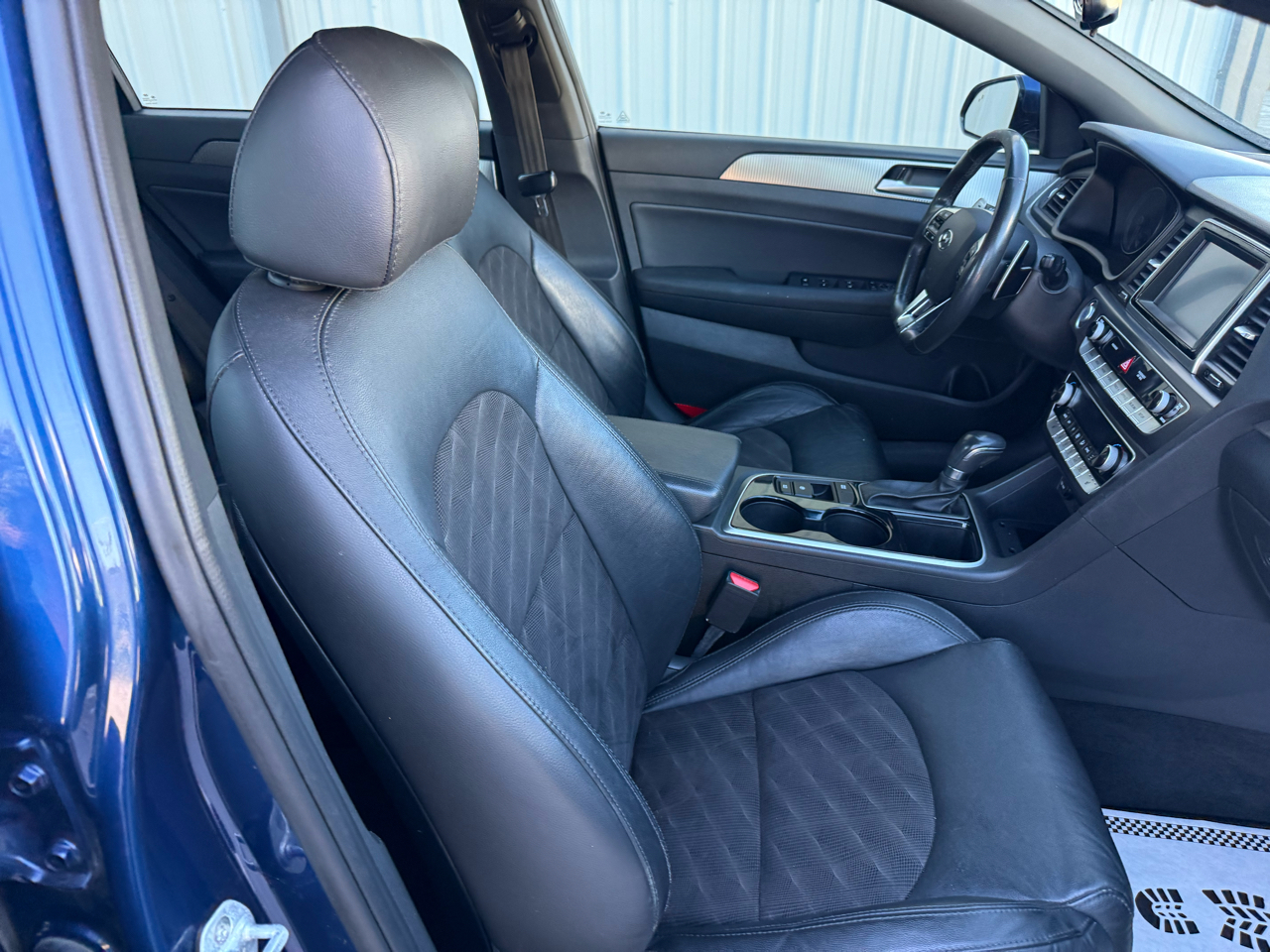 Sonata Sport+, 4D Sedan, 2.4L I4 DGI DOHC 16V ULEV II 185hp, 6-Speed Automatic with Shiftronic, FWD, Lakeside Blue, Black w/Leather Seating Surfaces, 4-Wheel Disc Brakes, 6 Speakers, ABS brakes, Air Conditioning, Alloy wheels, AM/FM radio: SiriusXM, Apple CarPlay & Android Auto, Auto High-beam Headlights, Automatic temperature control, Brake assist, Bumpers: body-color, Carpeted Floor Mats, Delay-off headlights, Driver door bin, Driver vanity mirror, Dual front impact airbags, Dual front side impact airbags, Electronic Stability Control, Emergency communication system: Blue Link, Exterior Parking Camera Rear, Four wheel independent suspension, Front anti-roll bar, Front Bucket Seats, Front Center Armrest, Front dual zone A/C, Front reading lights, Fully automatic headlights, Heated door mirrors, Heated front seats, Heated Front Sport Seats, Heated steering wheel, Illuminated Door Sill Plates, Illuminated entry, Knee airbag, Leather Bolster/Cloth Insert Seating Surfaces, Leather Shift Knob, Leather steering wheel, Low tire pressure warning, Occupant sensing airbag, Option Group 05, Outside temperature display, Overhead airbag, Overhead console, Panic alarm, Passenger door bin, Passenger vanity mirror, Power door mirrors, Power driver seat, Power moonroof, Power steering, Power windows, Radio data system, Radio: AM/FM/HD/SiriusXM/MP3 Display Audio, Rear anti-roll bar, Rear seat center armrest, Rear window defroster, Remote keyless entry, Reversible Cargo Tray, Security system, Speed control, Speed-sensing steering, Speed-Sensitive Wipers, Split folding rear seat, Sport steering wheel, Steering wheel mounted audio controls, Tachometer, Tech Package 05, Telescoping steering wheel, Tilt steering wheel, Traction control, Trip computer, Turn signal indicator mirrors, Variably intermittent wipers, Wheels: 17 x 7.0J Aluminum Alloy, Sonata Sport+, 4D Sedan, 2.4L I4 DGI DOHC 16V ULEV II 185hp, 6-Speed Automatic with Shiftronic, FWD, Lakeside Blue, Black w/Leather Seating Surfaces.