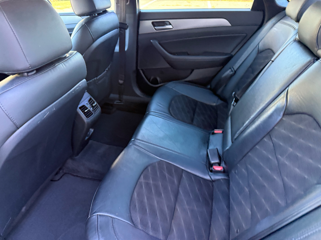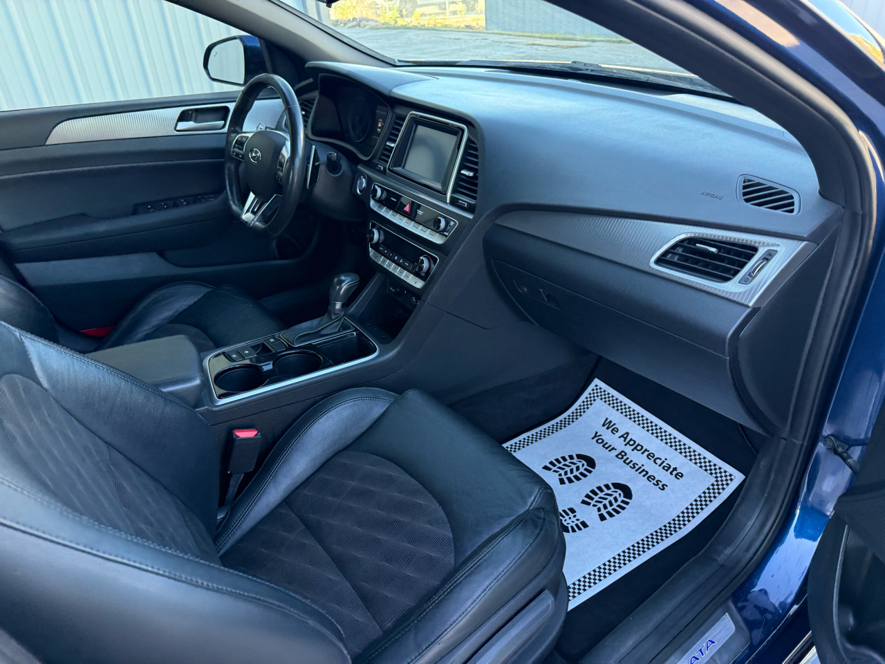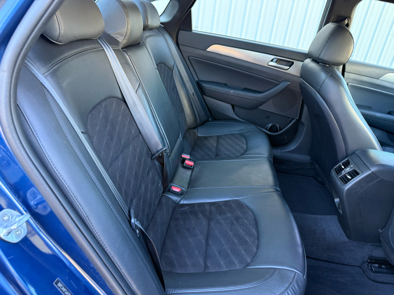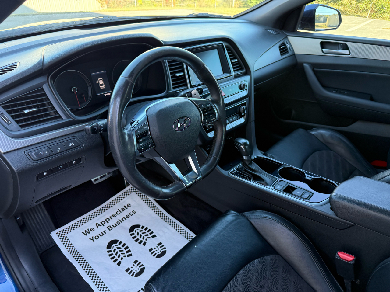 Sonata Sport+, 4D Sedan, 2.4L I4 DGI DOHC 16V ULEV II 185hp, 6-Speed Automatic with Shiftronic, FWD, Lakeside Blue, Black w/Leather Seating Surfaces, 4-Wheel Disc Brakes, 6 Speakers, ABS brakes, Air Conditioning, Alloy wheels, AM/FM radio: SiriusXM, Apple CarPlay & Android Auto, Auto High-beam Headlights, Automatic temperature control, Brake assist, Bumpers: body-color, Carpeted Floor Mats, Delay-off headlights, Driver door bin, Driver vanity mirror, Dual front impact airbags, Dual front side impact airbags, Electronic Stability Control, Emergency communication system: Blue Link, Exterior Parking Camera Rear, Four wheel independent suspension, Front anti-roll bar, Front Bucket Seats, Front Center Armrest, Front dual zone A/C, Front reading lights, Fully automatic headlights, Heated door mirrors, Heated front seats, Heated Front Sport Seats, Heated steering wheel, Illuminated Door Sill Plates, Illuminated entry, Knee airbag, Leather Bolster/Cloth Insert Seating Surfaces, Leather Shift Knob, Leather steering wheel, Low tire pressure warning, Occupant sensing airbag, Option Group 05, Outside temperature display, Overhead airbag, Overhead console, Panic alarm, Passenger door bin, Passenger vanity mirror, Power door mirrors, Power driver seat, Power moonroof, Power steering, Power windows, Radio data system, Radio: AM/FM/HD/SiriusXM/MP3 Display Audio, Rear anti-roll bar, Rear seat center armrest, Rear window defroster, Remote keyless entry, Reversible Cargo Tray, Security system, Speed control, Speed-sensing steering, Speed-Sensitive Wipers, Split folding rear seat, Sport steering wheel, Steering wheel mounted audio controls, Tachometer, Tech Package 05, Telescoping steering wheel, Tilt steering wheel, Traction control, Trip computer, Turn signal indicator mirrors, Variably intermittent wipers, Wheels: 17 x 7.0J Aluminum Alloy, Sonata Sport+, 4D Sedan, 2.4L I4 DGI DOHC 16V ULEV II 185hp, 6-Speed Automatic with Shiftronic, FWD, Lakeside Blue, Black w/Leather Seating Surfaces.