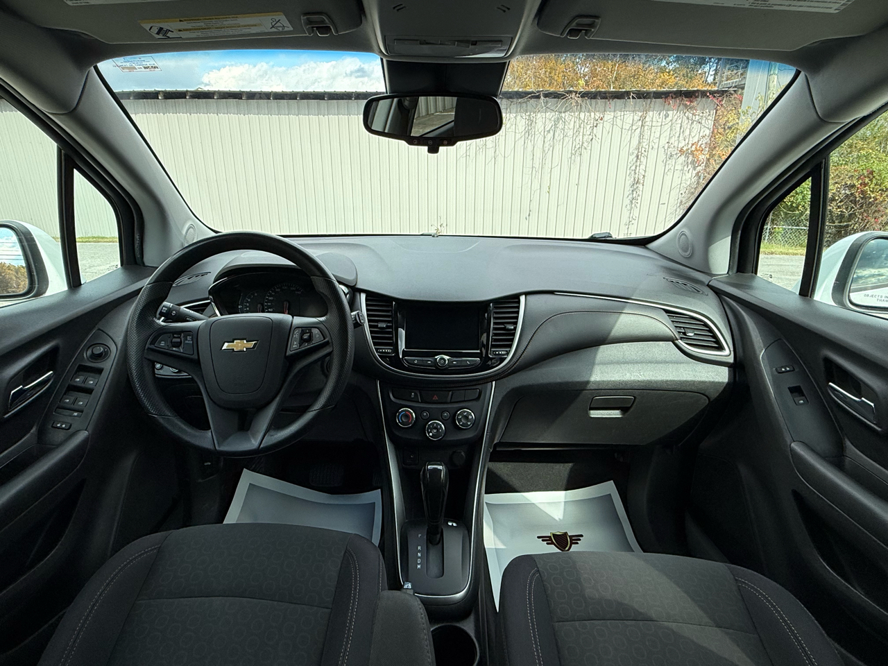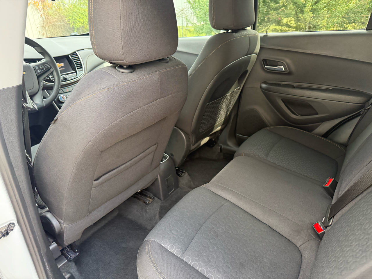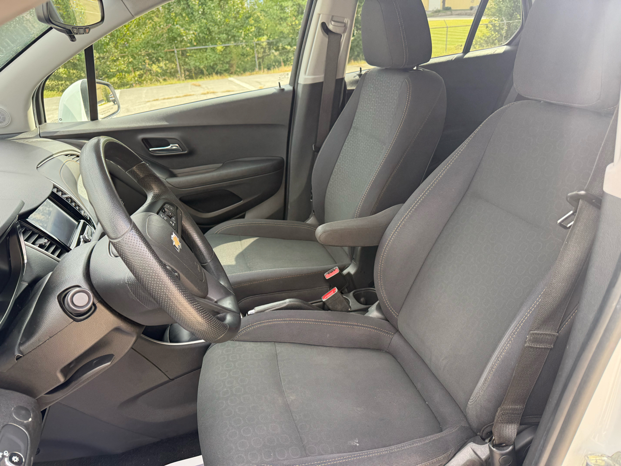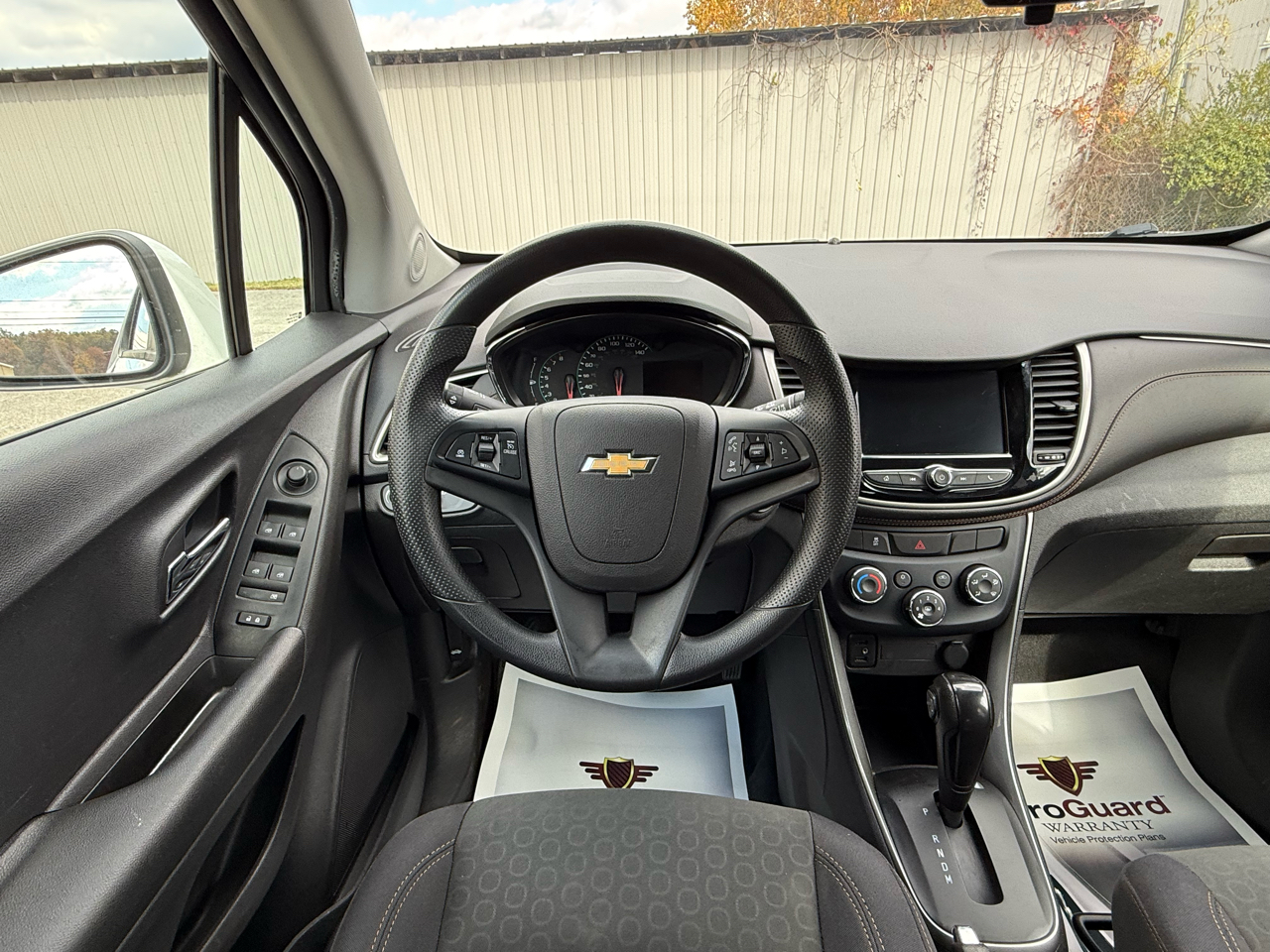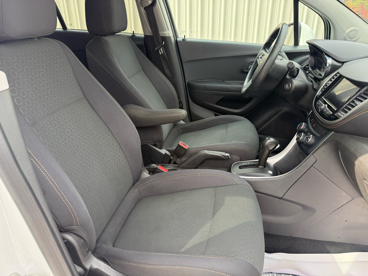 Trax LS, 4D Sport Utility, ECOTEC 1.4L I4 SMPI DOHC Turbocharged VVT, 6-Speed Automatic, FWD, Summit White, Jet Black w/Cloth Seat Trim, 16" Aluminum Wheels, 2 USB Ports w/Auxiliary Input Jack, 2-Way Manual Front Passenger Seat Adjuster, 3.53 Final Drive Axle Ratio, 4-Way Manual Driver Seat Adjuster, 6 Speakers, 6-Speaker Audio System Feature, ABS brakes, Air Conditioning, Alloy wheels, AM/FM radio, Apple CarPlay/Android Auto, Brake assist, Bumpers: body-color, Cloth Seat Trim, Compass, Deep-Tinted Rear Glass Windows & Liftgate, Delay-off headlights, Driver door bin, Driver vanity mirror, Driver's Seat Mounted Armrest, Dual front impact airbags, Dual front side impact airbags, Electronic Automatic Cruise Control, Electronic Stability Control, Emergency communication system: OnStar and Chevrolet connected services capable, Exterior Parking Camera Rear, Front anti-roll bar, Front Bucket Seats, Front Bucket Seats w/Driver Power Lumbar, Front License Plate Bracket, Front reading lights, Front wheel independent suspension, Fully automatic headlights, Illuminated entry, Knee airbag, Low tire pressure warning, Occupant sensing airbag, Outside temperature display, Overhead airbag, Panic alarm, Passenger door bin, Passenger vanity mirror, Power door mirrors, Power steering, Power windows, Preferred Equipment Group 1LS, Premium audio system: Chevrolet MyLink, Radio data system, Radio: Chevrolet Infotainment 3 System, Rear seat center armrest, Rear side impact airbag, Rear window defroster, Rear window wiper, Remote keyless entry, Security system, Split folding rear seat, Spoiler, Steering wheel mounted audio controls, Tachometer, Telescoping steering wheel, Tilt steering wheel, Traction control, Trip computer, Variably intermittent wipers, Trax LS, 4D Sport Utility, ECOTEC 1.4L I4 SMPI DOHC Turbocharged VVT, 6-Speed Automatic, FWD, Summit White, Jet Black w/Cloth Seat Trim.