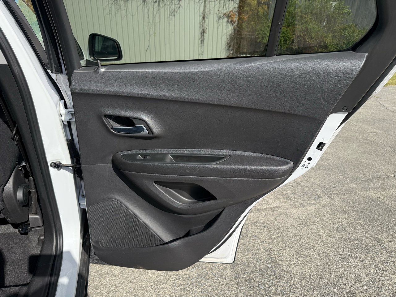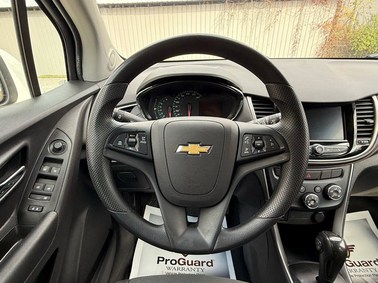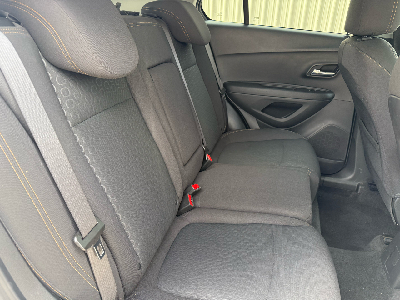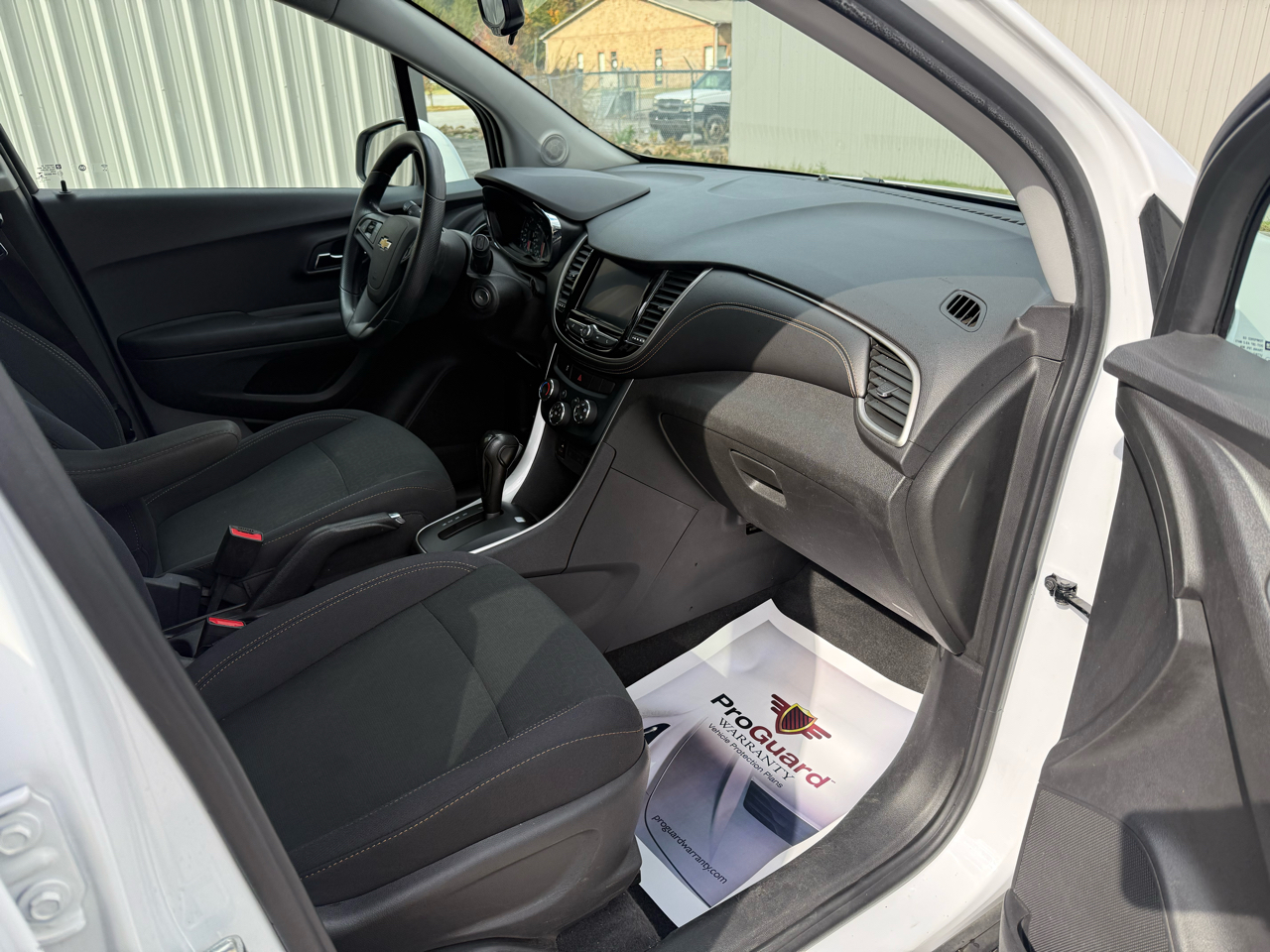 Trax LS, 4D Sport Utility, ECOTEC 1.4L I4 SMPI DOHC Turbocharged VVT, 6-Speed Automatic, FWD, Summit White, Jet Black w/Cloth Seat Trim, 16" Aluminum Wheels, 2 USB Ports w/Auxiliary Input Jack, 2-Way Manual Front Passenger Seat Adjuster, 3.53 Final Drive Axle Ratio, 4-Way Manual Driver Seat Adjuster, 6 Speakers, 6-Speaker Audio System Feature, ABS brakes, Air Conditioning, Alloy wheels, AM/FM radio, Apple CarPlay/Android Auto, Brake assist, Bumpers: body-color, Cloth Seat Trim, Compass, Deep-Tinted Rear Glass Windows & Liftgate, Delay-off headlights, Driver door bin, Driver vanity mirror, Driver's Seat Mounted Armrest, Dual front impact airbags, Dual front side impact airbags, Electronic Automatic Cruise Control, Electronic Stability Control, Emergency communication system: OnStar and Chevrolet connected services capable, Exterior Parking Camera Rear, Front anti-roll bar, Front Bucket Seats, Front Bucket Seats w/Driver Power Lumbar, Front License Plate Bracket, Front reading lights, Front wheel independent suspension, Fully automatic headlights, Illuminated entry, Knee airbag, Low tire pressure warning, Occupant sensing airbag, Outside temperature display, Overhead airbag, Panic alarm, Passenger door bin, Passenger vanity mirror, Power door mirrors, Power steering, Power windows, Preferred Equipment Group 1LS, Premium audio system: Chevrolet MyLink, Radio data system, Radio: Chevrolet Infotainment 3 System, Rear seat center armrest, Rear side impact airbag, Rear window defroster, Rear window wiper, Remote keyless entry, Security system, Split folding rear seat, Spoiler, Steering wheel mounted audio controls, Tachometer, Telescoping steering wheel, Tilt steering wheel, Traction control, Trip computer, Variably intermittent wipers, Trax LS, 4D Sport Utility, ECOTEC 1.4L I4 SMPI DOHC Turbocharged VVT, 6-Speed Automatic, FWD, Summit White, Jet Black w/Cloth Seat Trim.
