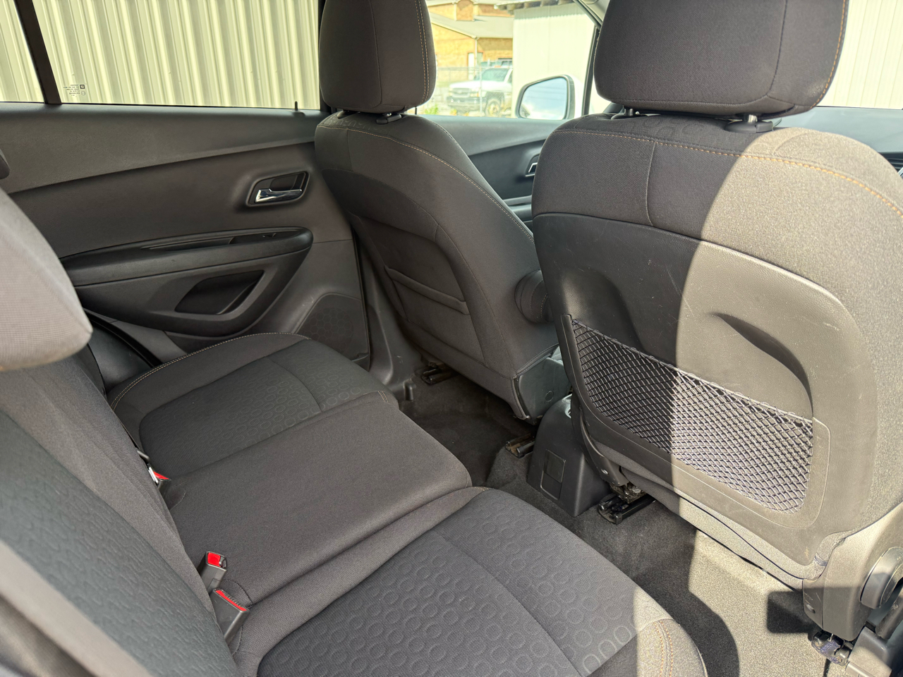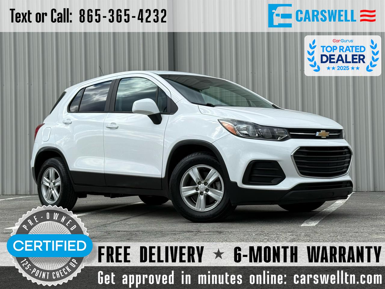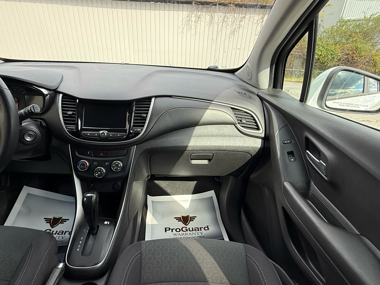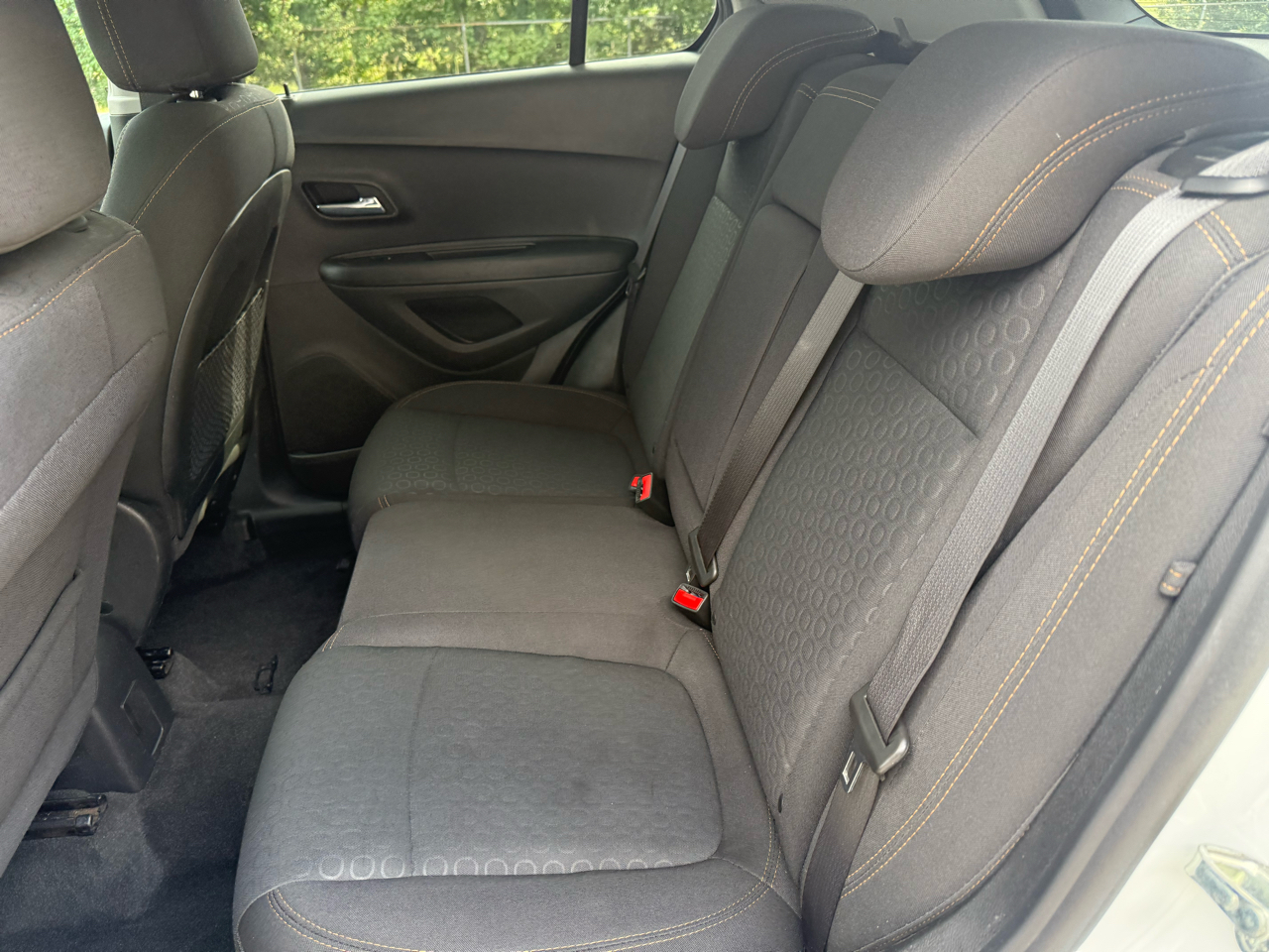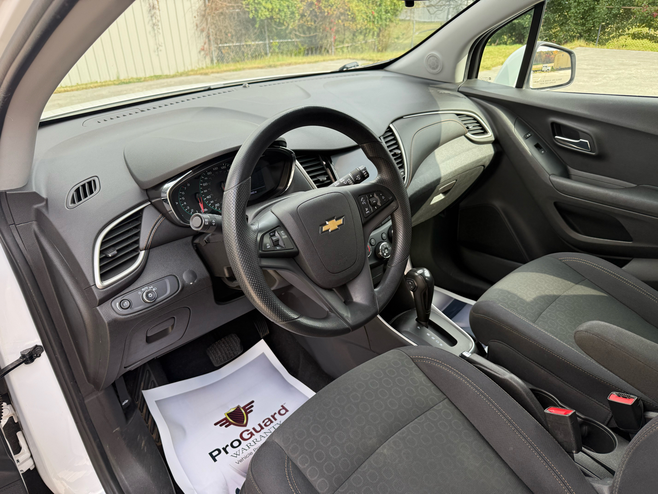 Trax LS, 4D Sport Utility, ECOTEC 1.4L I4 SMPI DOHC Turbocharged VVT, 6-Speed Automatic, FWD, Summit White, Jet Black w/Cloth Seat Trim, 16" Aluminum Wheels, 2 USB Ports w/Auxiliary Input Jack, 2-Way Manual Front Passenger Seat Adjuster, 3.53 Final Drive Axle Ratio, 4-Way Manual Driver Seat Adjuster, 6 Speakers, 6-Speaker Audio System Feature, ABS brakes, Air Conditioning, Alloy wheels, AM/FM radio, Apple CarPlay/Android Auto, Brake assist, Bumpers: body-color, Cloth Seat Trim, Compass, Deep-Tinted Rear Glass Windows & Liftgate, Delay-off headlights, Driver door bin, Driver vanity mirror, Driver's Seat Mounted Armrest, Dual front impact airbags, Dual front side impact airbags, Electronic Automatic Cruise Control, Electronic Stability Control, Emergency communication system: OnStar and Chevrolet connected services capable, Exterior Parking Camera Rear, Front anti-roll bar, Front Bucket Seats, Front Bucket Seats w/Driver Power Lumbar, Front License Plate Bracket, Front reading lights, Front wheel independent suspension, Fully automatic headlights, Illuminated entry, Knee airbag, Low tire pressure warning, Occupant sensing airbag, Outside temperature display, Overhead airbag, Panic alarm, Passenger door bin, Passenger vanity mirror, Power door mirrors, Power steering, Power windows, Preferred Equipment Group 1LS, Premium audio system: Chevrolet MyLink, Radio data system, Radio: Chevrolet Infotainment 3 System, Rear seat center armrest, Rear side impact airbag, Rear window defroster, Rear window wiper, Remote keyless entry, Security system, Split folding rear seat, Spoiler, Steering wheel mounted audio controls, Tachometer, Telescoping steering wheel, Tilt steering wheel, Traction control, Trip computer, Variably intermittent wipers, Trax LS, 4D Sport Utility, ECOTEC 1.4L I4 SMPI DOHC Turbocharged VVT, 6-Speed Automatic, FWD, Summit White, Jet Black w/Cloth Seat Trim.