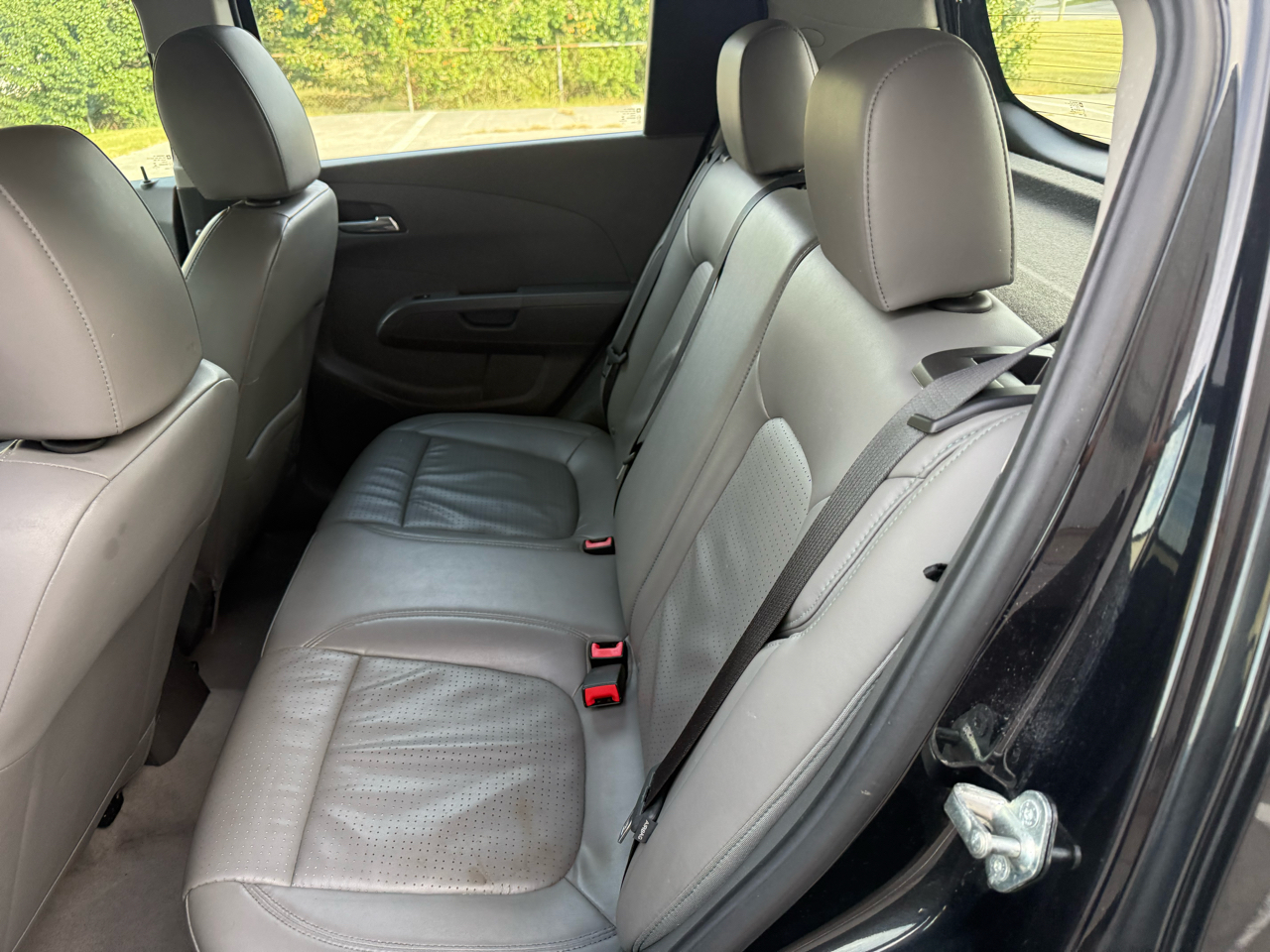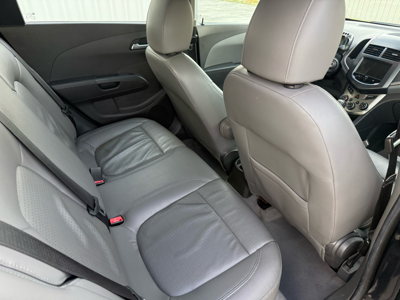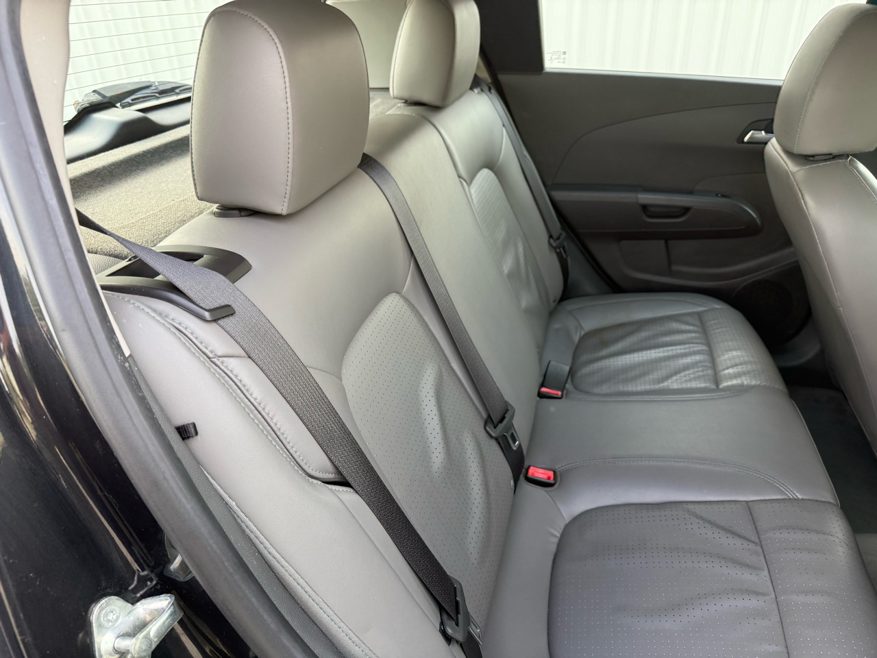Sonic LTZ, 4D Hatchback, ECOTEC 1.8L I4 DOHC VVT, 6-Speed Automatic, FWD, Black Granite Metallic, Dark Pewter/Dark Titanium w/Perforated Leatherette Seating Surfaces, 17" Painted Aluminum Wheels, 3.47 Axle Ratio, 6 Speakers, ABS brakes, Air Conditioning, Alloy wheels, AM/FM radio: SiriusXM, Brake assist, Bumpers: body-color, Compass, Delay-off headlights, Driver door bin, Driver vanity mirror, Dual front impact airbags, Dual front side impact airbags, Electronic Stability Control, Emergency communication system: OnStar Directions & Connections, Front anti-roll bar, Front Bucket Seats, Front fog lights, Front reading lights, Front wheel independent suspension, Fully automatic headlights, Heated door mirrors, Heated Front Bucket Seats, Heated front seats, Illuminated entry, Knee airbag, Low tire pressure warning, Occupant sensing airbag, Oil Pan Heater, Outside temperature display, Overhead airbag, Panic alarm, Passenger door bin, Passenger vanity mirror, Perforated Leatherette Seating Surfaces, Power door mirrors, Power steering, Power Tilt-Sliding Sunroof w/Express-Open, Power windows, Preferred Equipment Group 1SF, Premium 6-Speaker Audio System Feature, Radio data system, Radio: Chevrolet MyLink AM/FM Stereo, Rear side impact airbag, Rear window defroster, Rear window wiper, Remote keyless entry, Security system, SiriusXM Satellite Radio, Speed control, Split folding rear seat, Spoiler, Sport steering wheel, Steering wheel mounted audio controls, Tachometer, Telescoping steering wheel, Tilt steering wheel, Traction control, Trip computer, USB Port, Variably intermittent wipers, Sonic LTZ, 4D Hatchback, ECOTEC 1.8L I4 DOHC VVT, 6-Speed Automatic, FWD, Black Granite Metallic, Dark Pewter/Dark Titanium w/Perforated Leatherette Seating Surfaces.