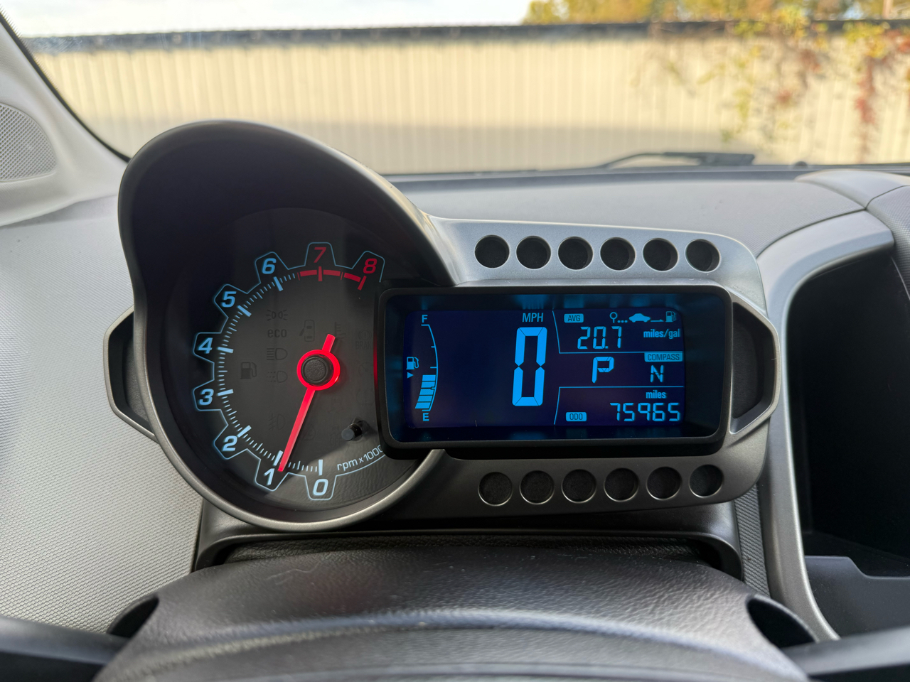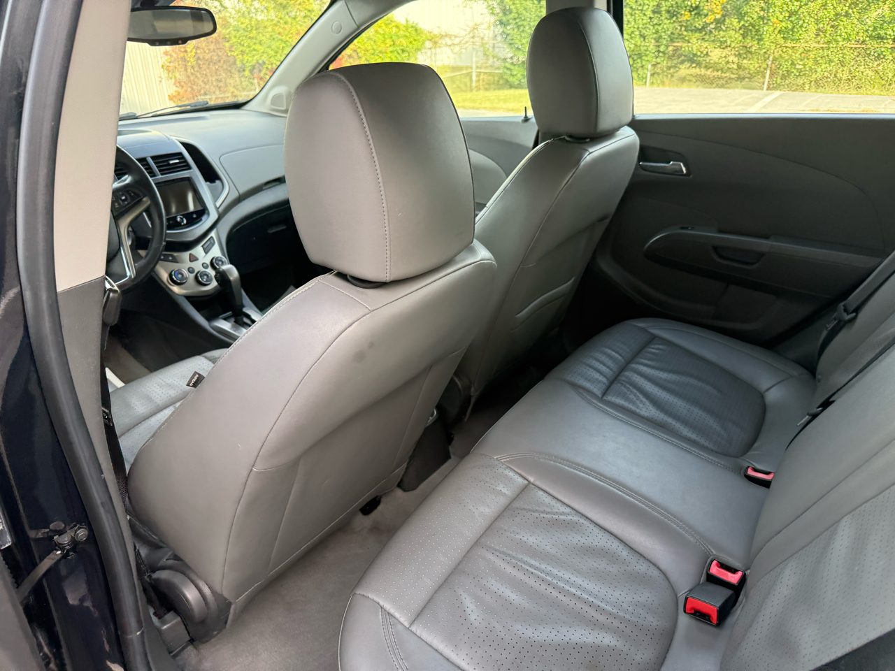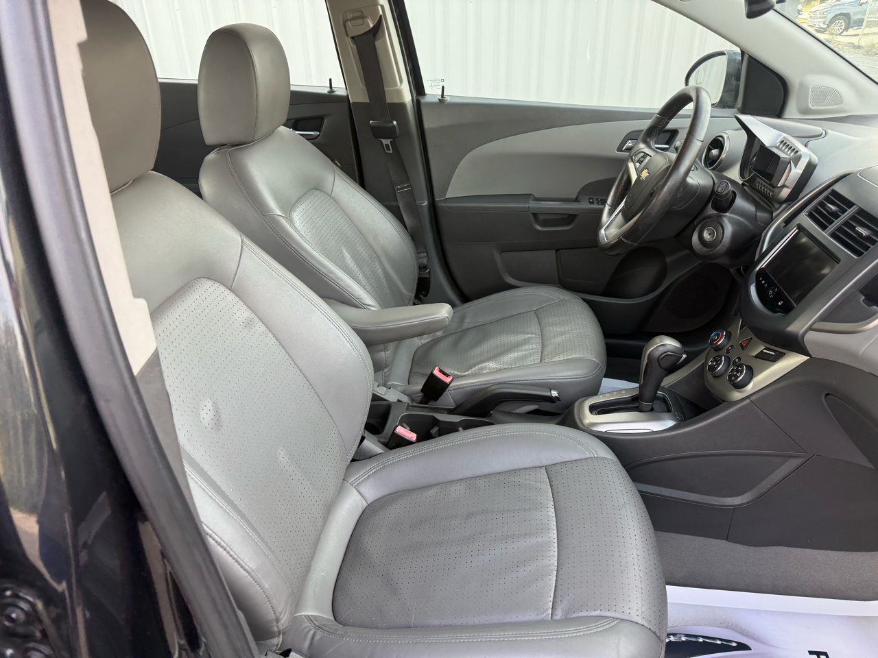 Sonic LTZ, 4D Hatchback, ECOTEC 1.8L I4 DOHC VVT, 6-Speed Automatic, FWD, Black Granite Metallic, Dark Pewter/Dark Titanium w/Perforated Leatherette Seating Surfaces, 17" Painted Aluminum Wheels, 3.47 Axle Ratio, 6 Speakers, ABS brakes, Air Conditioning, Alloy wheels, AM/FM radio: SiriusXM, Brake assist, Bumpers: body-color, Compass, Delay-off headlights, Driver door bin, Driver vanity mirror, Dual front impact airbags, Dual front side impact airbags, Electronic Stability Control, Emergency communication system: OnStar Directions & Connections, Front anti-roll bar, Front Bucket Seats, Front fog lights, Front reading lights, Front wheel independent suspension, Fully automatic headlights, Heated door mirrors, Heated Front Bucket Seats, Heated front seats, Illuminated entry, Knee airbag, Low tire pressure warning, Occupant sensing airbag, Oil Pan Heater, Outside temperature display, Overhead airbag, Panic alarm, Passenger door bin, Passenger vanity mirror, Perforated Leatherette Seating Surfaces, Power door mirrors, Power steering, Power Tilt-Sliding Sunroof w/Express-Open, Power windows, Preferred Equipment Group 1SF, Premium 6-Speaker Audio System Feature, Radio data system, Radio: Chevrolet MyLink AM/FM Stereo, Rear side impact airbag, Rear window defroster, Rear window wiper, Remote keyless entry, Security system, SiriusXM Satellite Radio, Speed control, Split folding rear seat, Spoiler, Sport steering wheel, Steering wheel mounted audio controls, Tachometer, Telescoping steering wheel, Tilt steering wheel, Traction control, Trip computer, USB Port, Variably intermittent wipers, Sonic LTZ, 4D Hatchback, ECOTEC 1.8L I4 DOHC VVT, 6-Speed Automatic, FWD, Black Granite Metallic, Dark Pewter/Dark Titanium w/Perforated Leatherette Seating Surfaces.