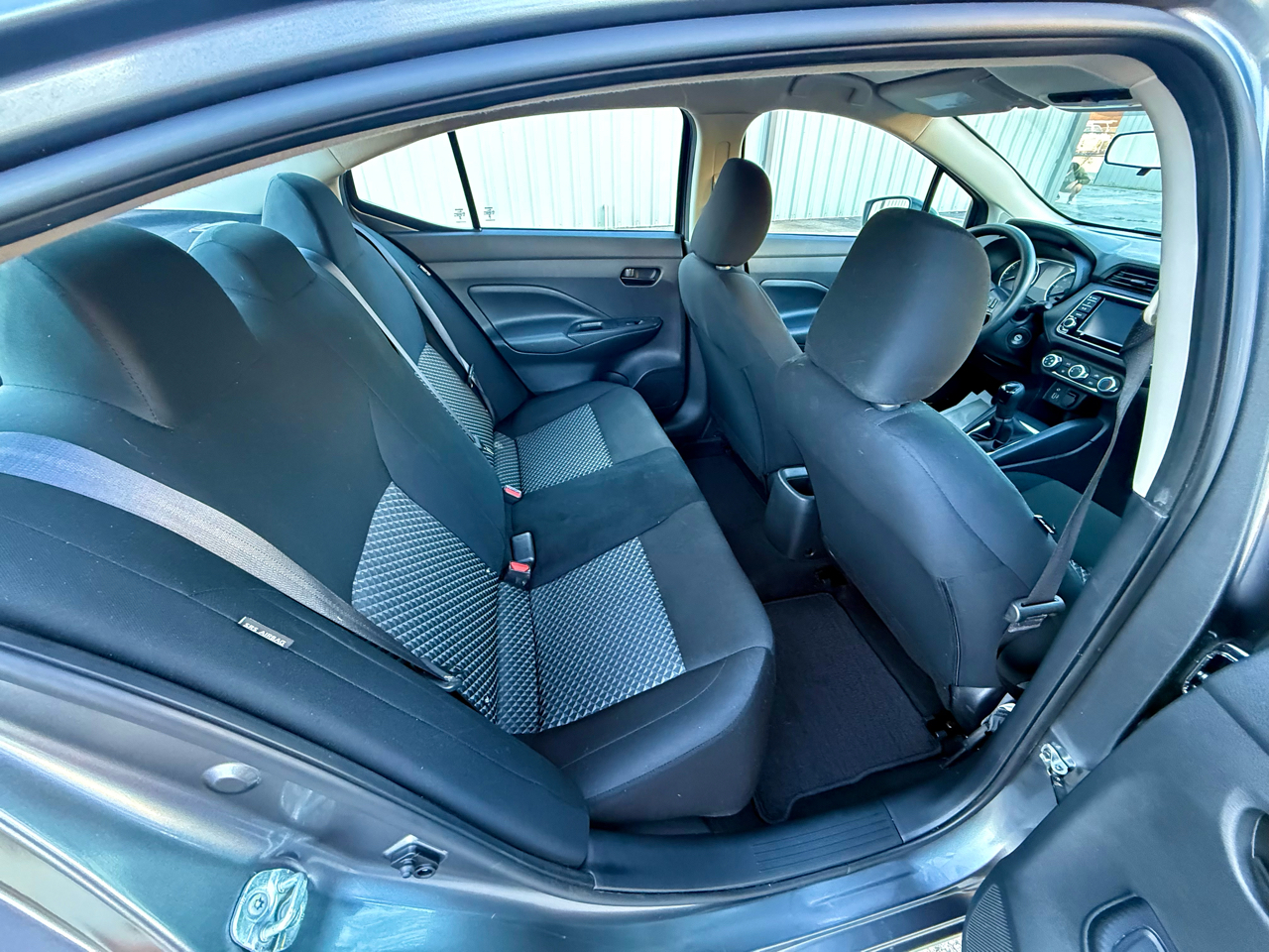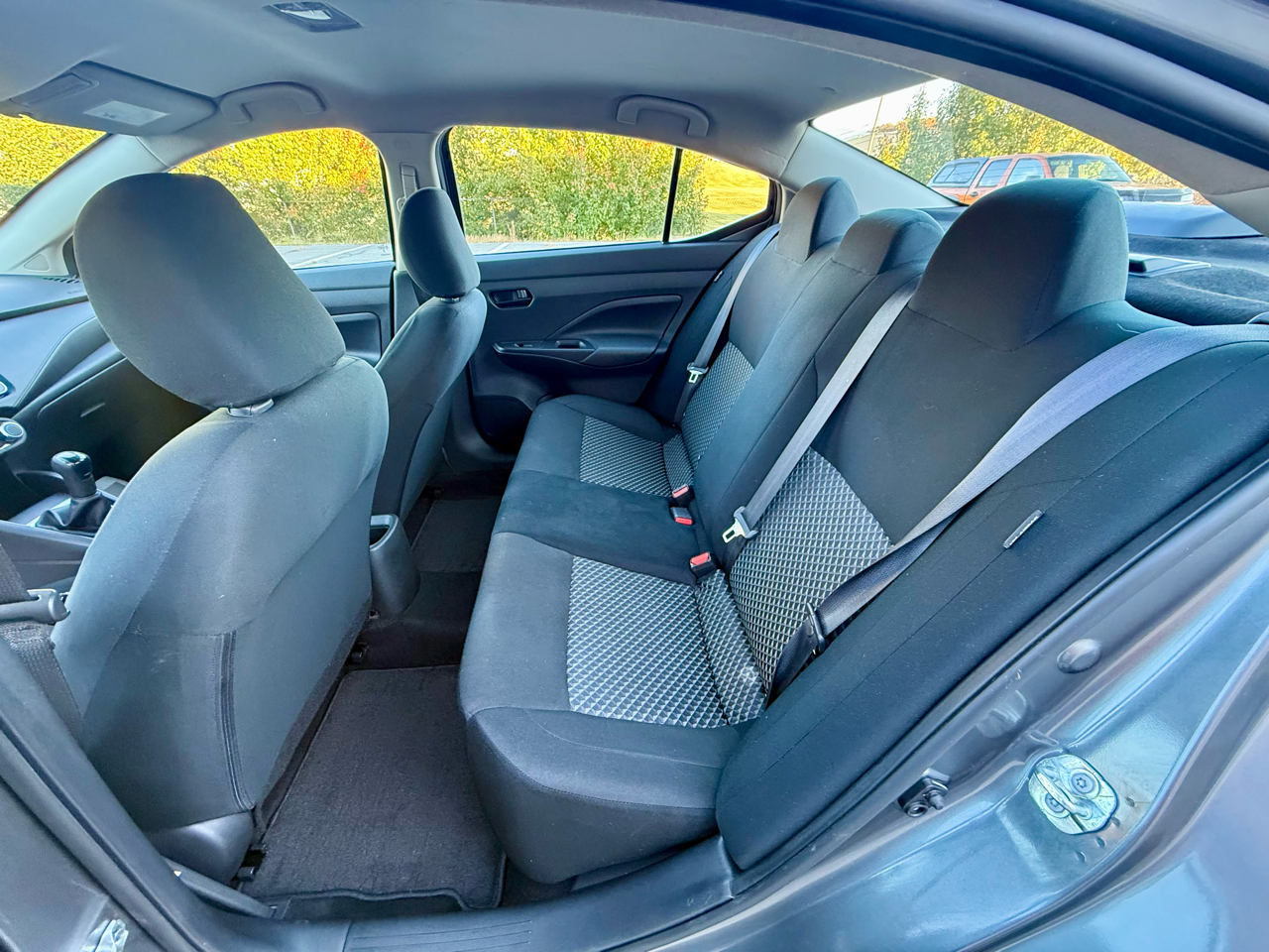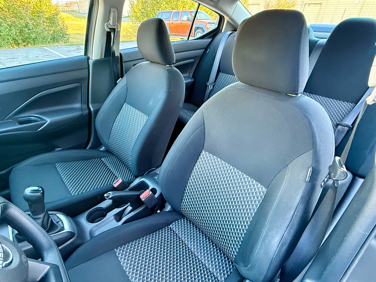 Versa 1.6 S, 4D Sedan, 1.6L I4 DOHC 16V, 5-Speed Manual, FWD, Gun Metallic, Charcoal w/Cloth Seat Trim, 15" Steel Wheels w/Full Wheel Covers, 4 Speakers, ABS brakes, Air Conditioning, AM/FM radio, Auto High-beam Headlights, Brake assist, Bumpers: body-color, Carpeted Floor Mats, Cloth Seat Trim, Driver door bin, Driver vanity mirror, Dual front impact airbags, Dual front side impact airbags, Electronic Stability Control, Front anti-roll bar, Front Bucket Seats, Front reading lights, Front wheel independent suspension, Fully automatic headlights, Illuminated entry, Knee airbag, Low tire pressure warning, Occupant sensing airbag, Outside temperature display, Overhead airbag, Panic alarm, Passenger door bin, Passenger vanity mirror, Power door mirrors, Power steering, Power windows, Radio data system, Radio: AM/FM Audio System, Rear Parking Sensors, Rear side impact airbag, Rear window defroster, Speed control, Splash Guards, Steering wheel mounted audio controls, Tachometer, Telescoping steering wheel, Tilt steering wheel, Traction control, Trip computer, Variably intermittent wipers, Versa 1.6 S, 4D Sedan, 1.6L I4 DOHC 16V, 5-Speed Manual, FWD, Gun Metallic, Charcoal w/Cloth Seat Trim.