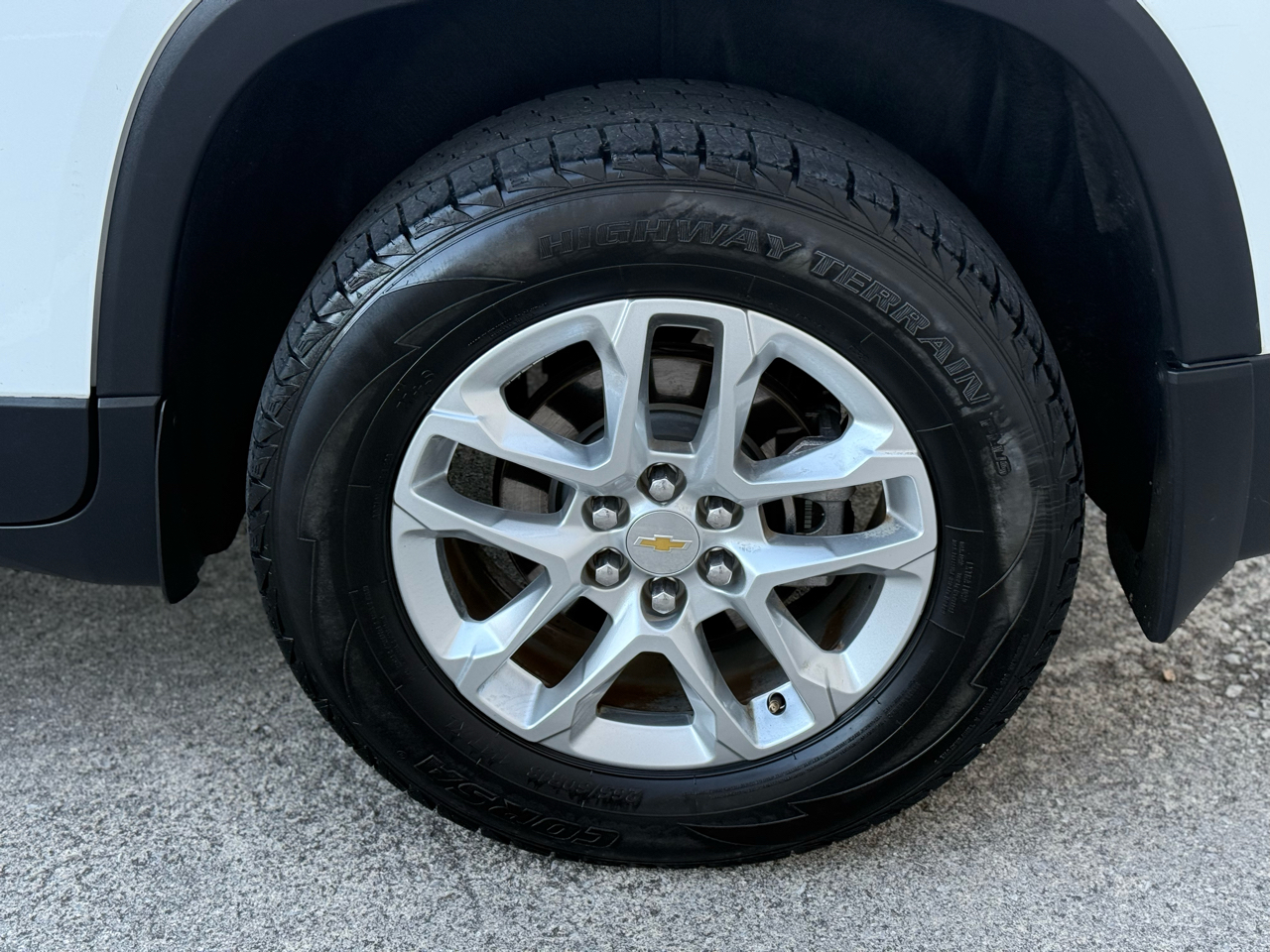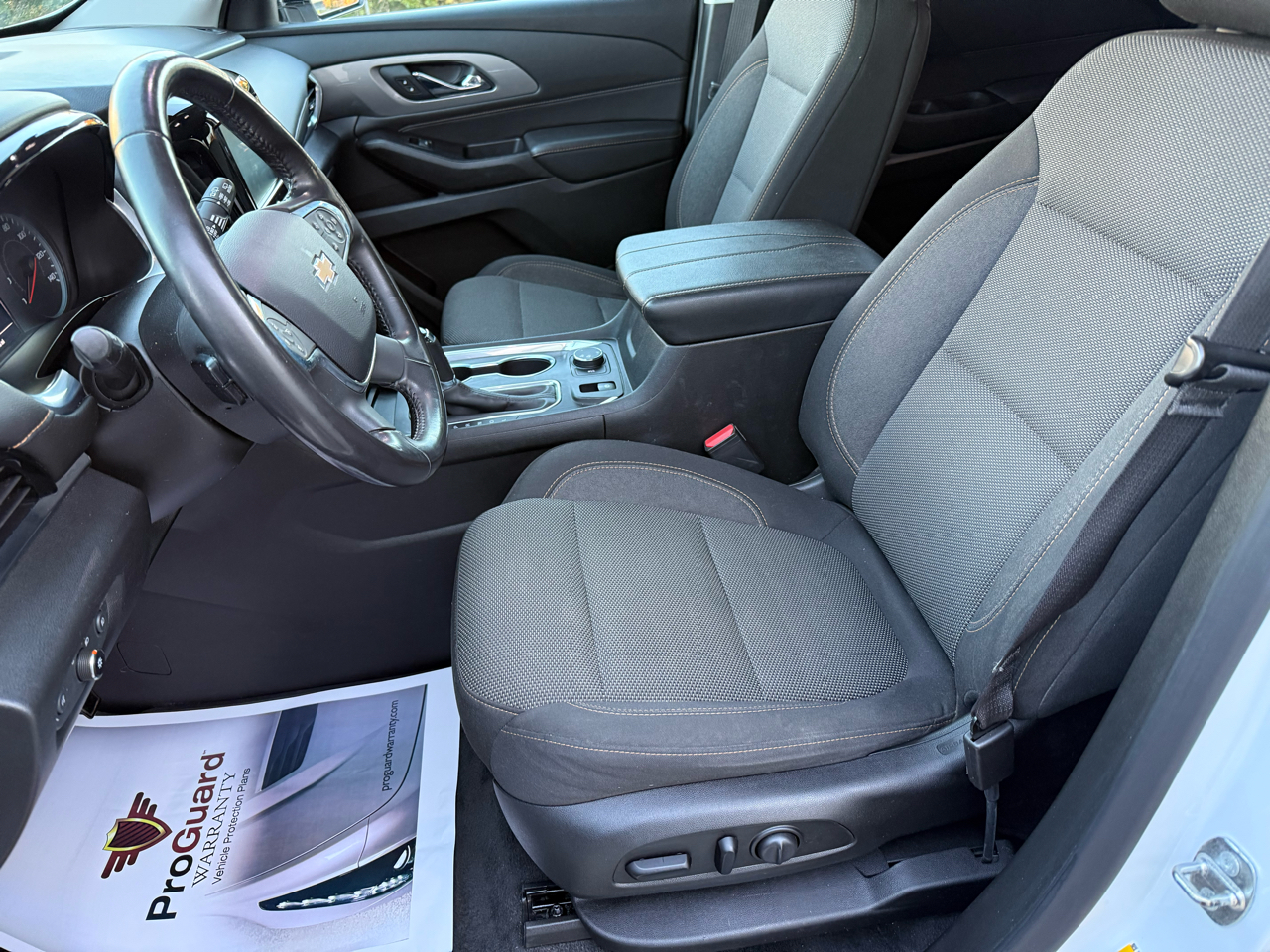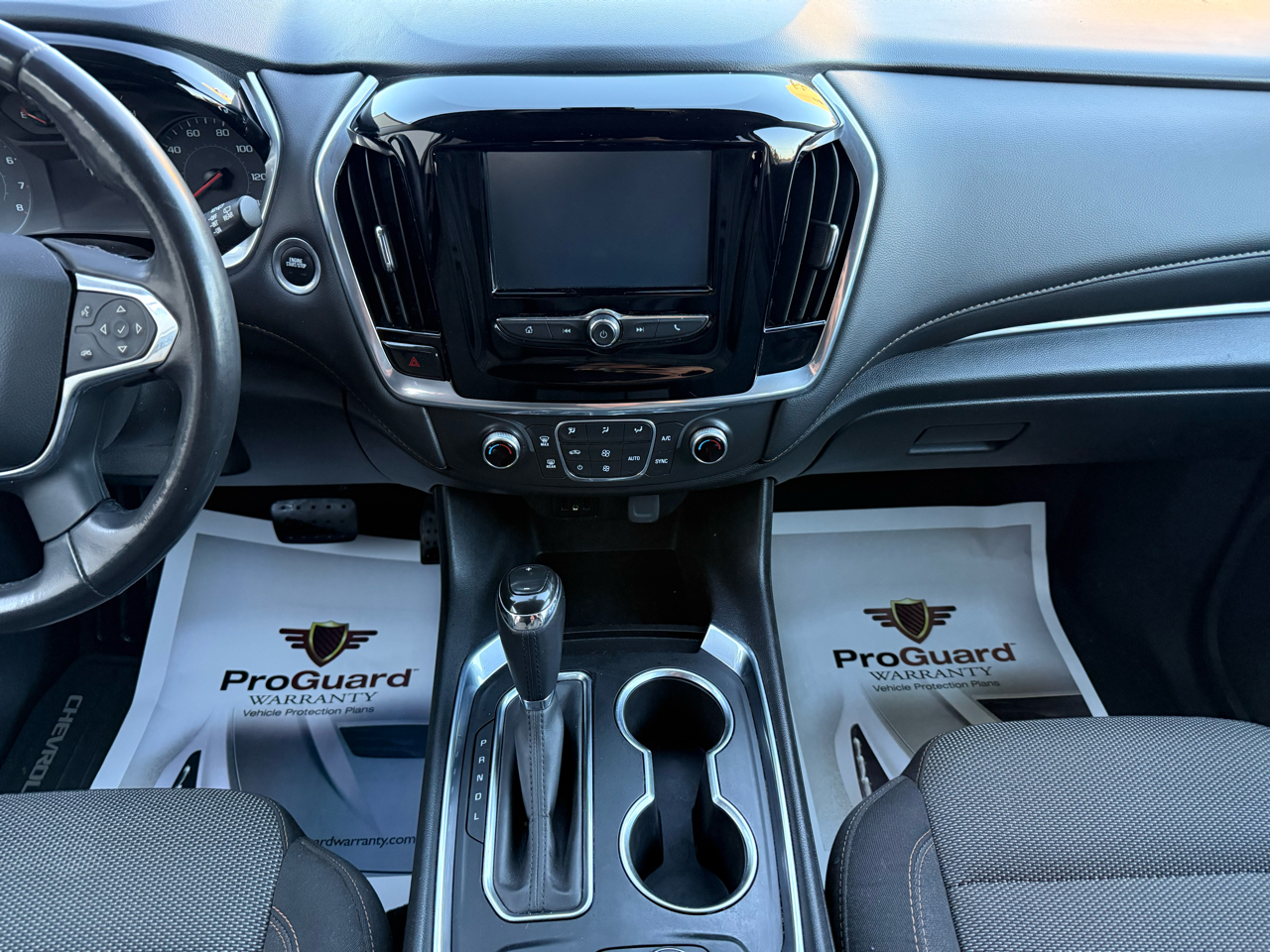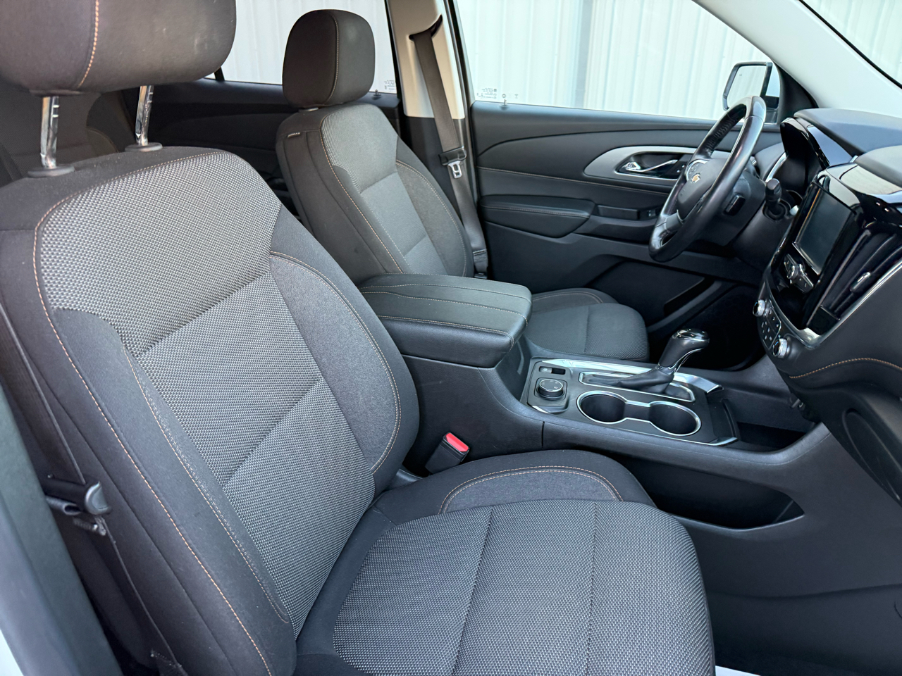 Traverse LT Cloth w/2FL, 4D Sport Utility, 3.6L V6 SIDI VVT, 9-Speed Automatic, AWD, Summit White, Jet Black w/Premium Cloth Seat Trim, 1st & 2nd Row All-Weather Floor Mats, 3.49 Axle Ratio, 3rd Row All-Weather Floor Mats, 3rd row seats: split-bench, 4-Wheel Disc Brakes, 6 Speakers, 7-Passenger Seating (2-2-3 Seating Configuration), ABS brakes, Air Conditioning, All-Weather Cargo Mat (LPO), Alloy wheels, AM/FM radio: SiriusXM, Apple CarPlay/Android Auto, Automatic temperature control, Brake assist, Bumpers: body-color, Cargo Package (LPO), Compass, Custom Molded Front & Rear Splash Guards (LPO), Delay-off headlights, Driver door bin, Driver vanity mirror, Dual front impact airbags, Dual front side impact airbags, Electronic Stability Control, Emergency communication system, Four wheel independent suspension, Front anti-roll bar, Front Bucket Seats, Front Center Armrest, Front dual zone A/C, Front fog lights, Front License Plate Bracket Mounting Package, Front reading lights, Fully automatic headlights, Heated door mirrors, High-Intensity Discharge Headlights, Illuminated entry, Interior Protection Package (LPO), Low tire pressure warning, Occupant sensing airbag, Outside temperature display, Overhead airbag, Overhead console, Panic alarm, Passenger door bin, Passenger vanity mirror, Power door mirrors, Power driver seat, Power steering, Power windows, Premium Cloth Seat Trim, Radio data system, Rear air conditioning, Rear anti-roll bar, Rear reading lights, Rear window defroster, Rear window wiper, Remote keyless entry, Retractable Cargo Shade, Roof rack: rails only, Security system, SiriusXM Radio, Speed control, Speed-sensing steering, Spoiler, Steering wheel mounted audio controls, Tachometer, Telescoping steering wheel, Tilt steering wheel, Traction control, Trip computer, Turn signal indicator mirrors, Variably intermittent wipers, Vertical Cargo Net (LPO), Voltmeter, Wheels: 18" Bright Silver Painted Aluminum, Traverse LT Cloth w/2FL, 4D Sport Utility, 3.6L V6 SIDI VVT, 9-Speed Automatic, AWD, Summit White, Jet Black w/Premium Cloth Seat Trim.