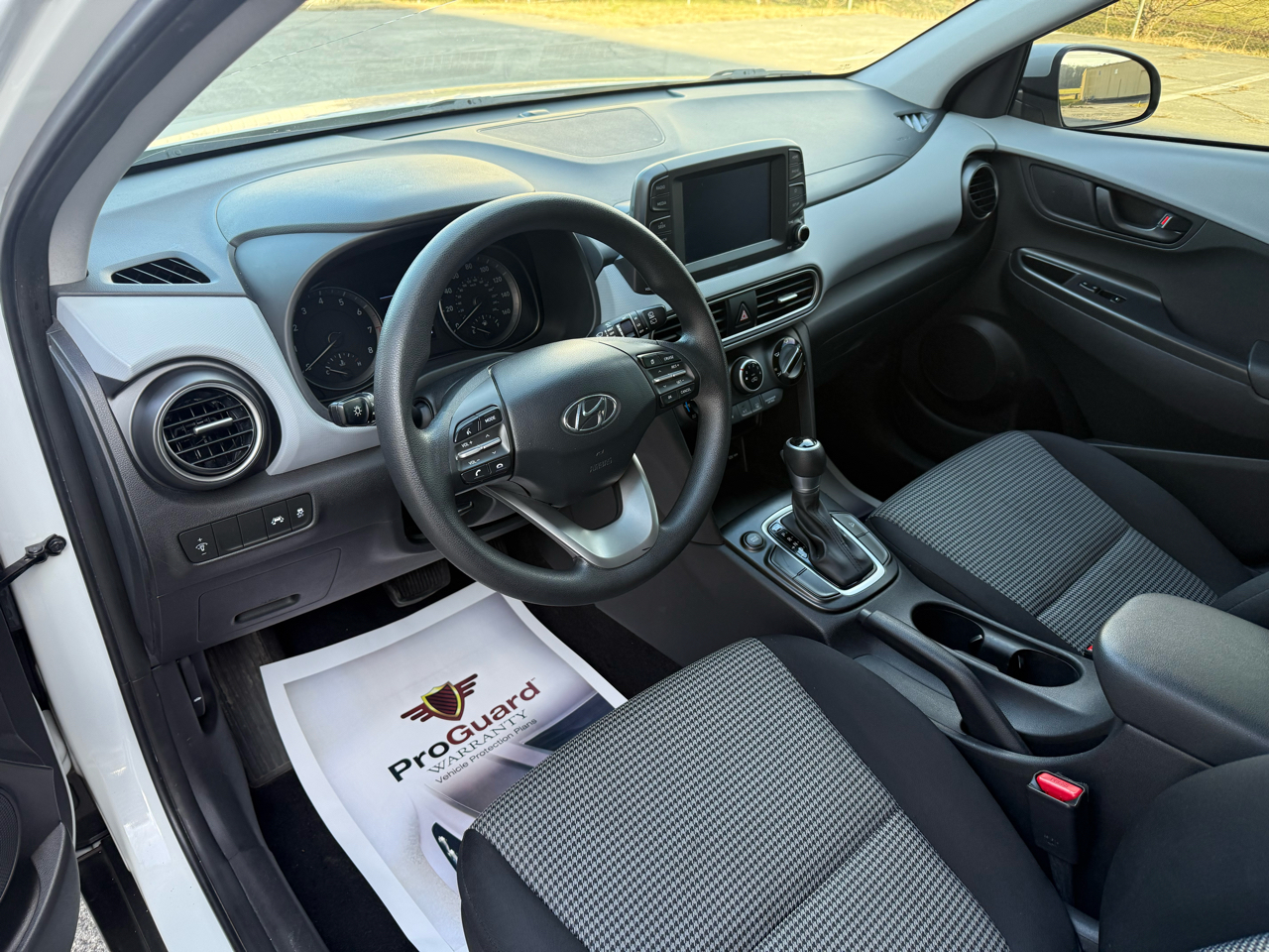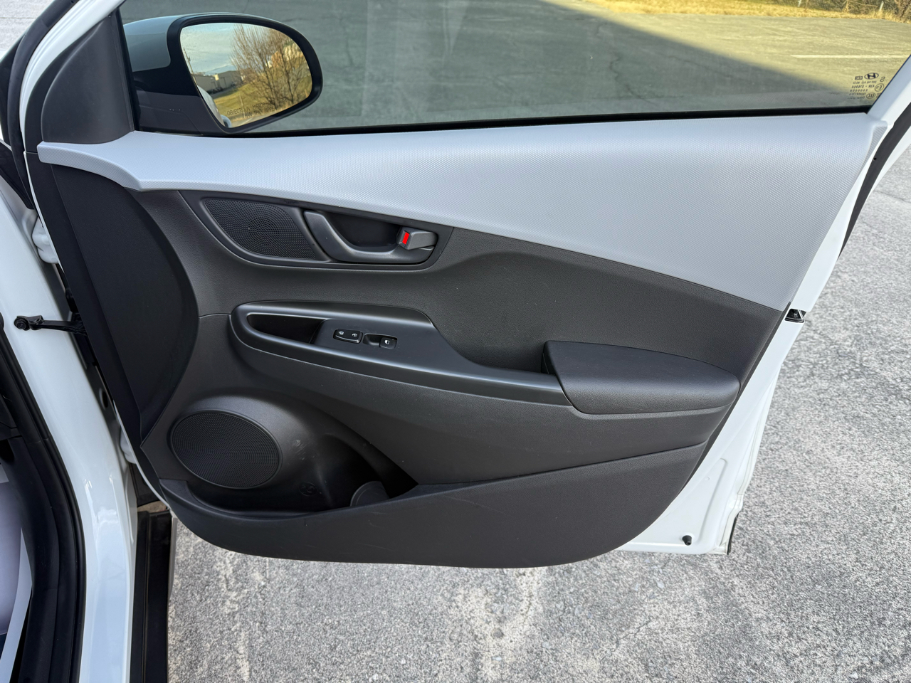 Kona SE, 4D Sport Utility, I4, 6-Speed Automatic with Shiftronic, FWD, Chalk White, Black w/Cloth Seat Trim, 3.510 Axle Ratio, 4-Wheel Disc Brakes, 6 Speakers, ABS brakes, Air Conditioning, Alloy wheels, AM/FM radio, Apple CarPlay & Android Auto, Brake assist, Bumpers: body-color, Cloth Seat Trim, Delay-off headlights, Driver door bin, Driver vanity mirror, Dual front impact airbags, Dual front side impact airbags, Electronic Stability Control, Exterior Parking Camera Rear, Front anti-roll bar, Front Bucket Seats, Front Center Armrest, Front reading lights, Front wheel independent suspension, Fully automatic headlights, Illuminated entry, Low tire pressure warning, Occupant sensing airbag, Option Group 01, Overhead airbag, Overhead console, Panic alarm, Passenger door bin, Passenger vanity mirror, Power door mirrors, Power steering, Power windows, Radio: AM/FM/MP3 Audio System, Rear seat center armrest, Rear window defroster, Rear window wiper, Remote keyless entry, Security system, Speed control, Speed-sensing steering, Split folding rear seat, Spoiler, Steering wheel mounted audio controls, Tachometer, Telescoping steering wheel, Tilt steering wheel, Traction control, Trip computer, Variably intermittent wipers, Wheels: 16 x 6.5J Alloy, Kona SE, 4D Sport Utility, I4, 6-Speed Automatic with Shiftronic, FWD, Chalk White, Black w/Cloth Seat Trim.